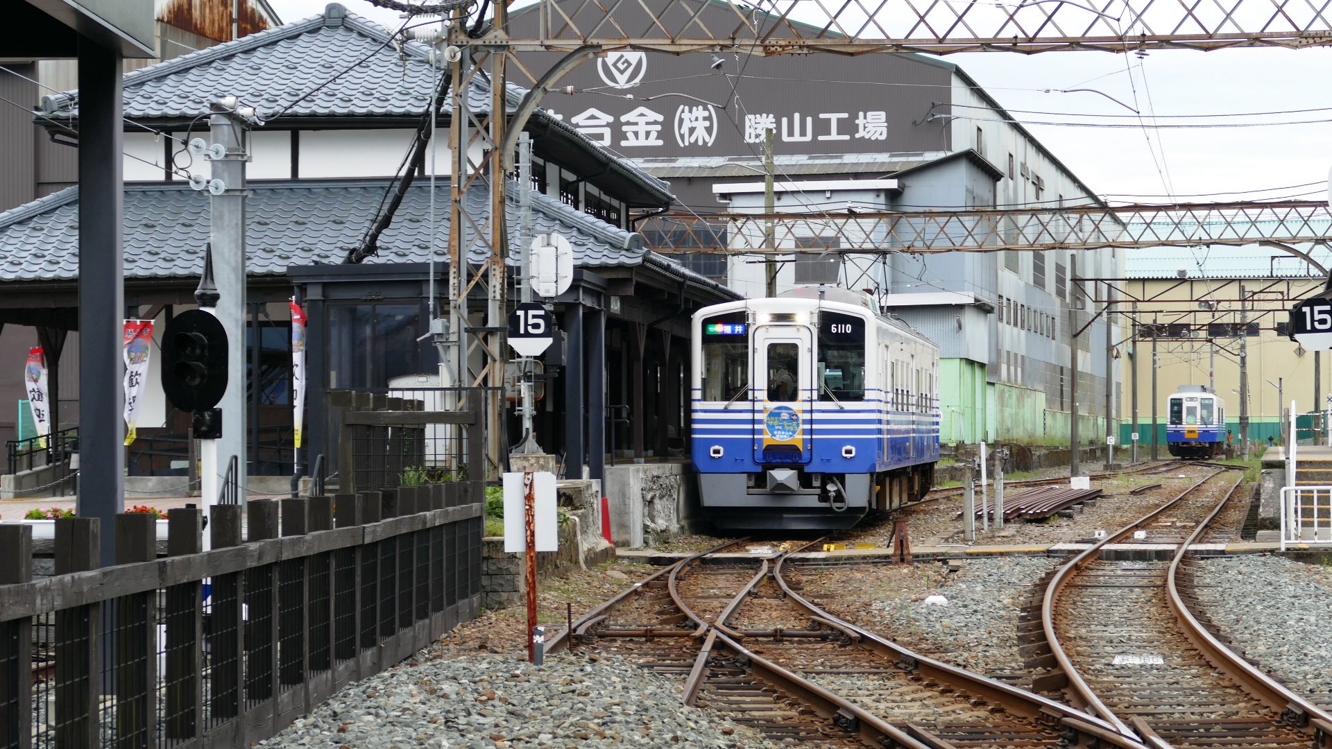| えちぜん鉄道 京福電気鉄道が福井県下で運営していた越前本線(現 勝山永平寺線)・三国芦原線を引き継いで、2002年に福井市・勝山市が出資する第三セクター方式で運営している。 MC6000形は元愛知環状鉄道の車両を改造した単行運転版。 MC7000形は元飯田線119系をVVVF化し2両1編成で運行。 |