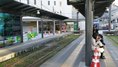 奥田中学校駅 併用軌道区間には単線区間もある。 |