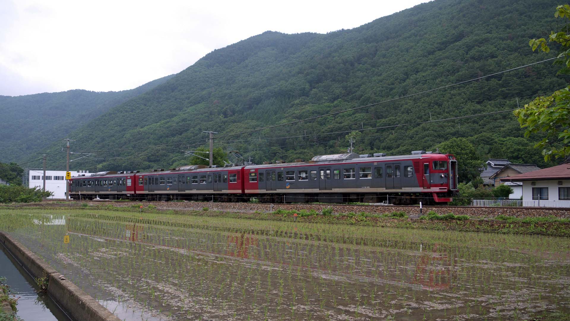 田園地帯を走るMC6000形 | 勝山永平寺線 越前竹原-小舟渡 MC7000形 |