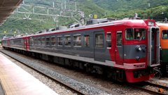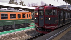 | 1000系「ゆけむり」 湯田中駅 右手は旧駅舎(有形文化財) |