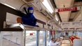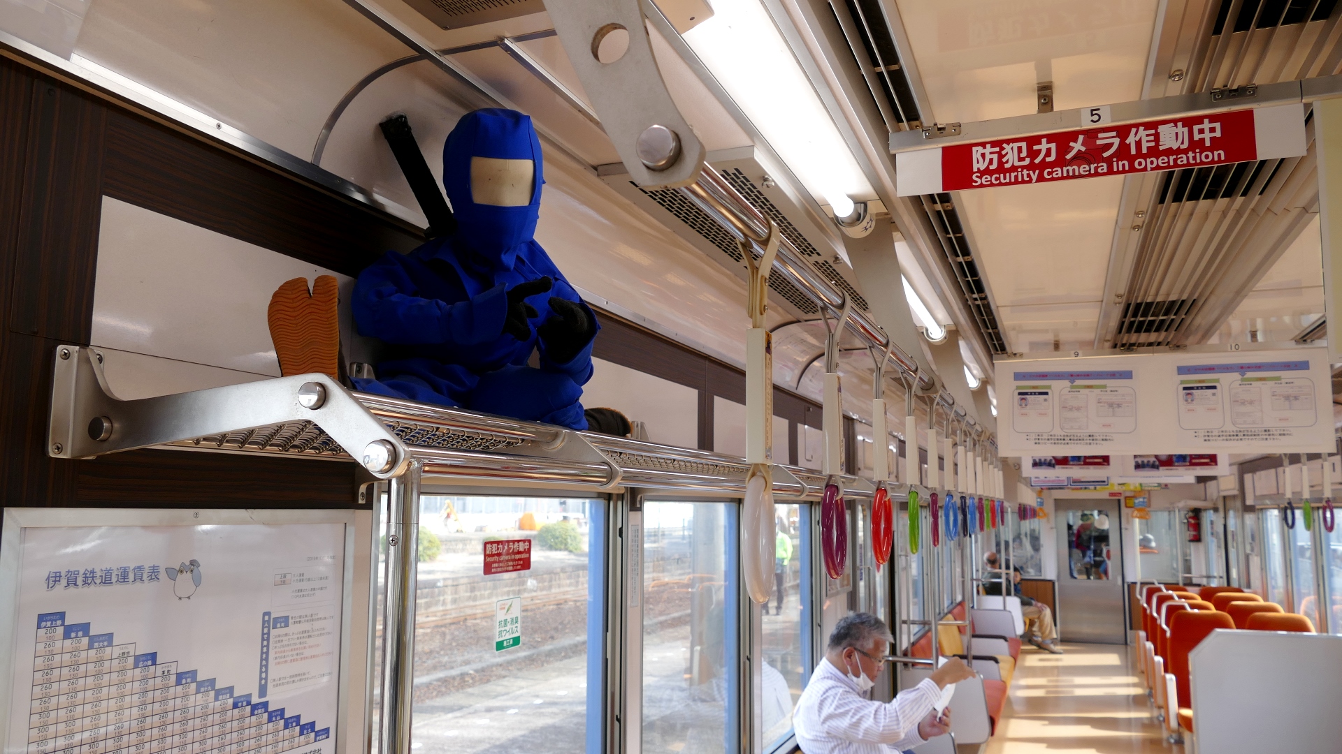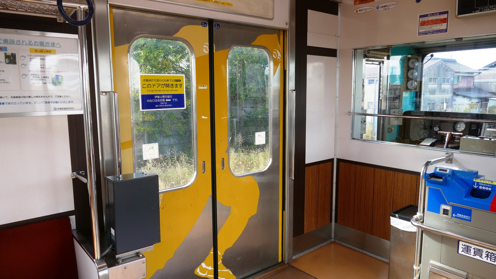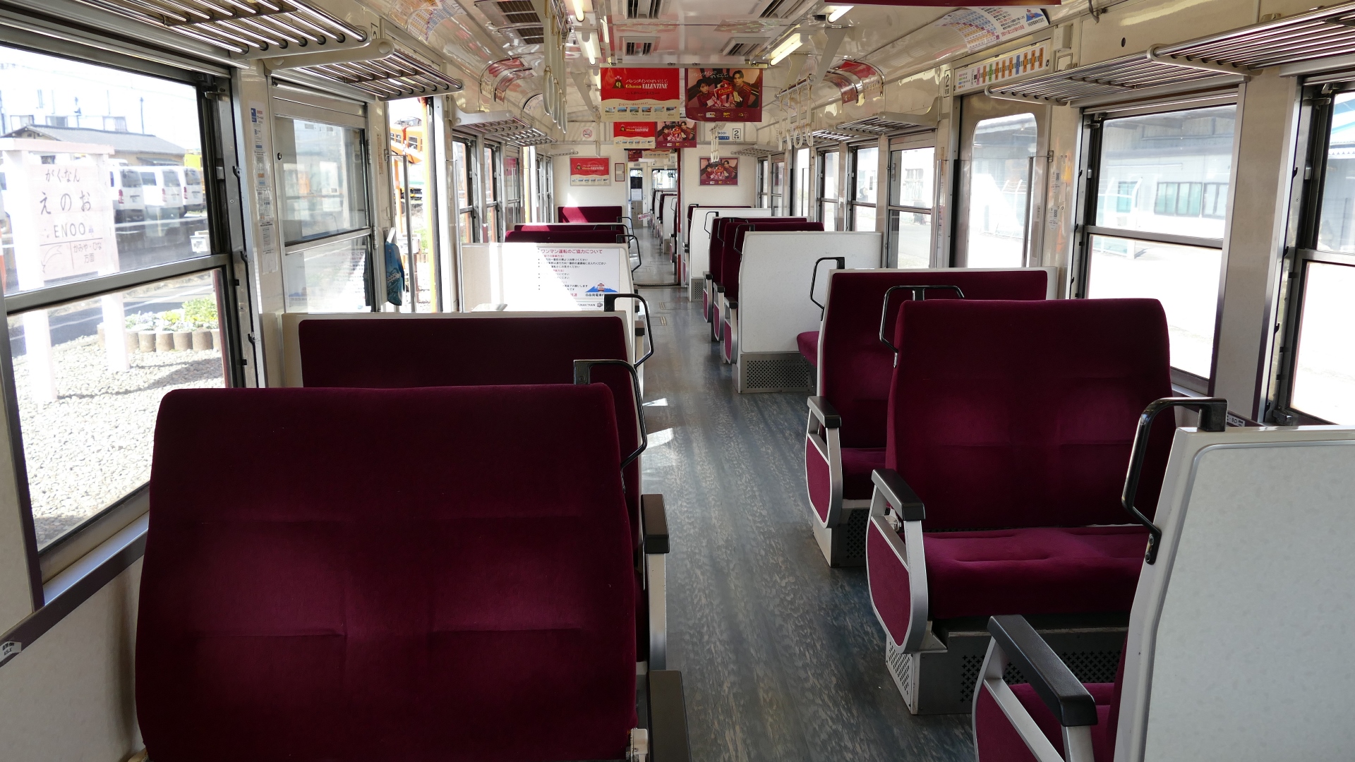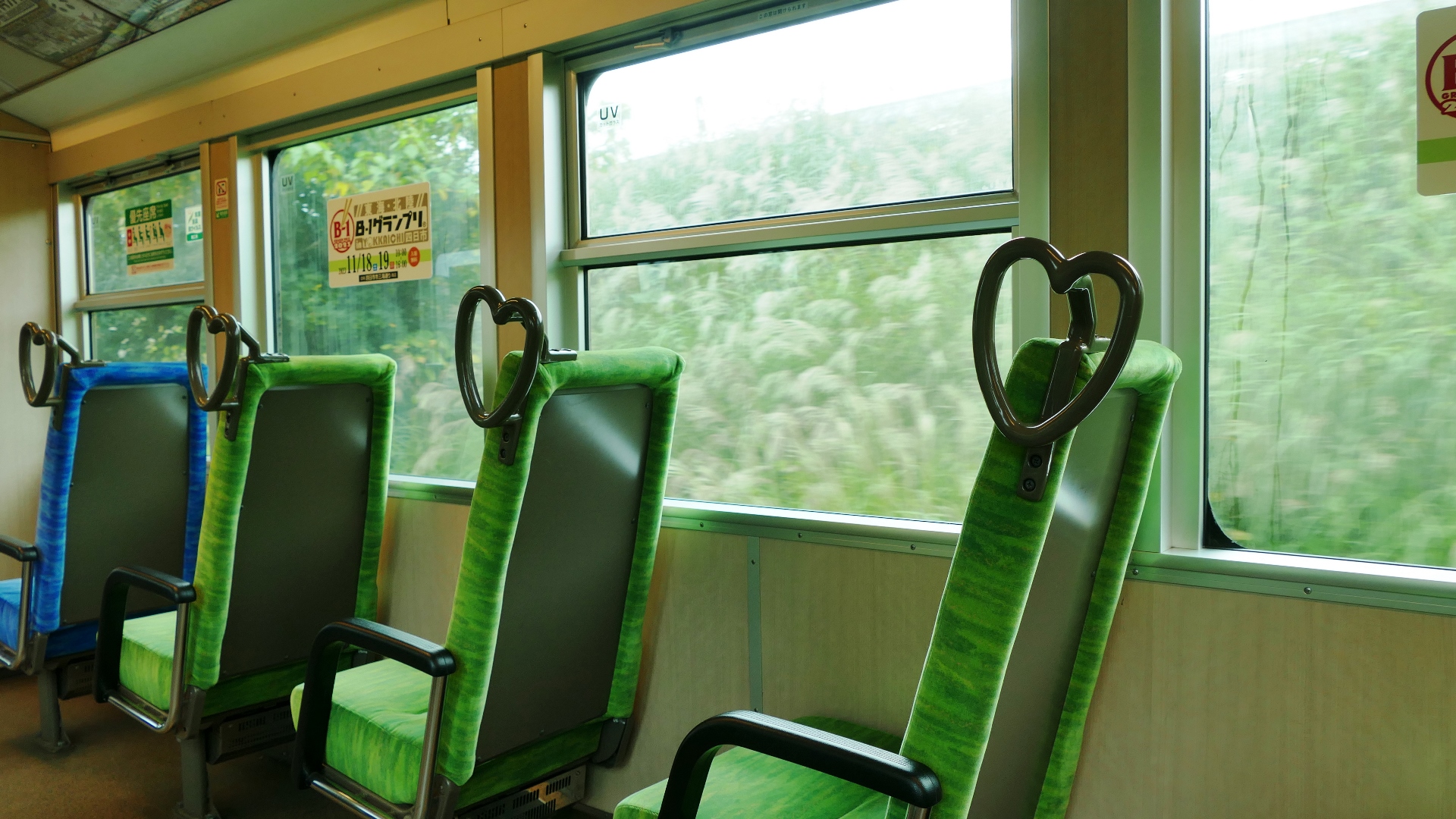 車内の様子 座席の把手は「ハート型」 |