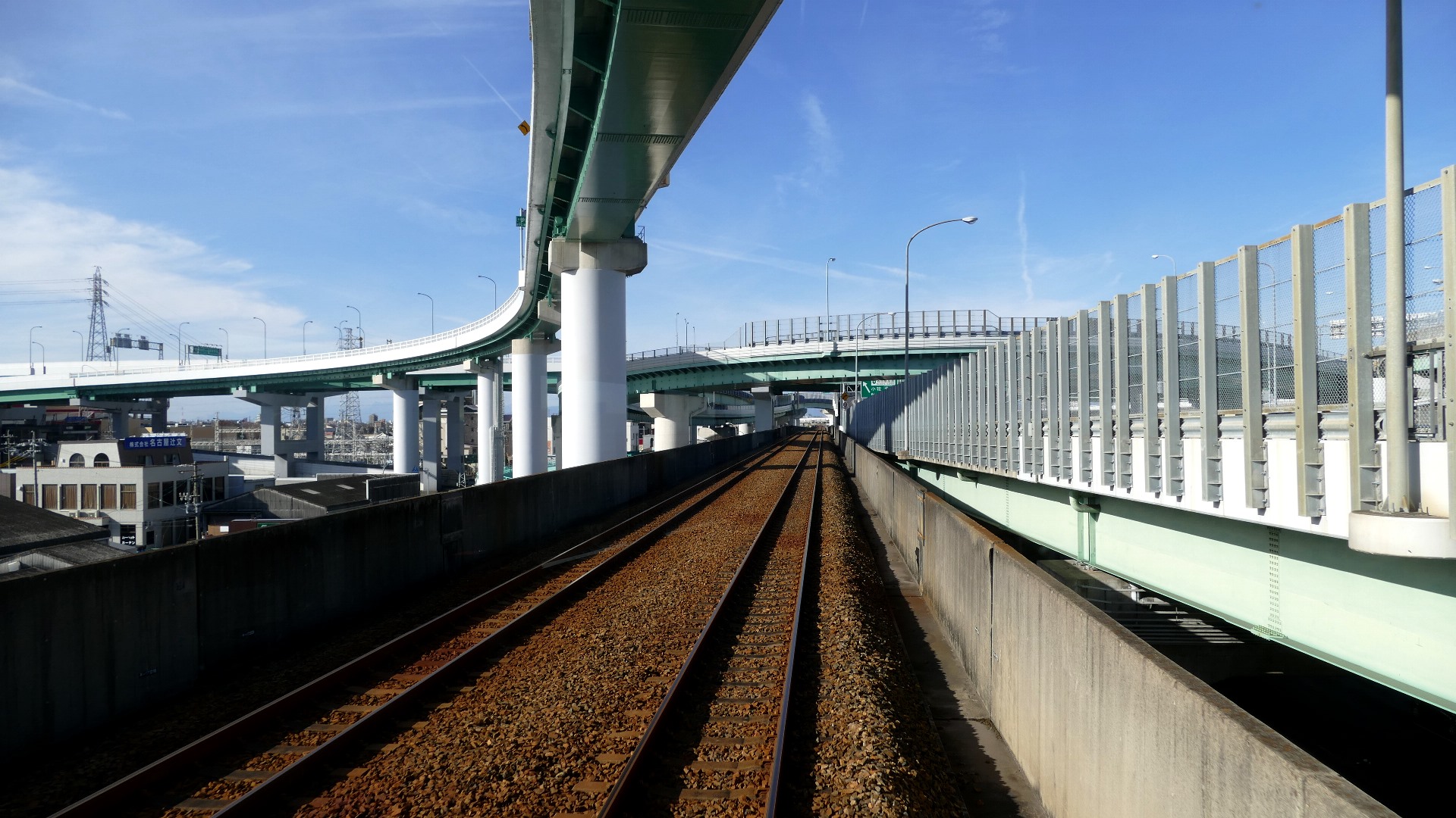 北勢線 西桑名-馬道 JR・近鉄線を直角にまたぐ。 |