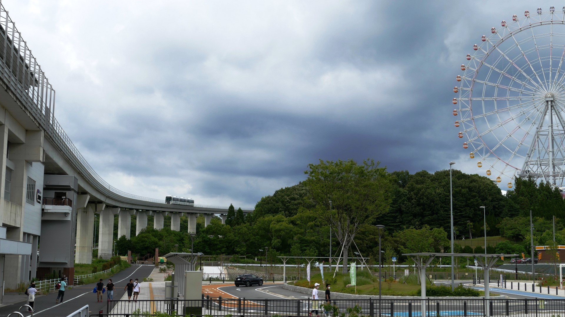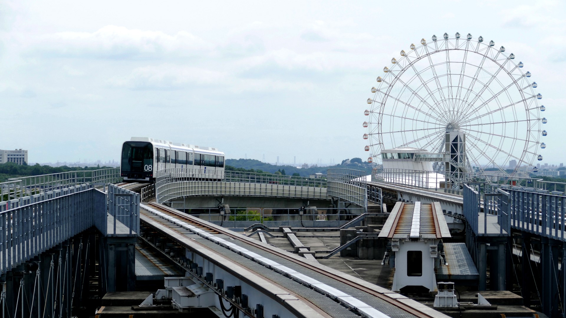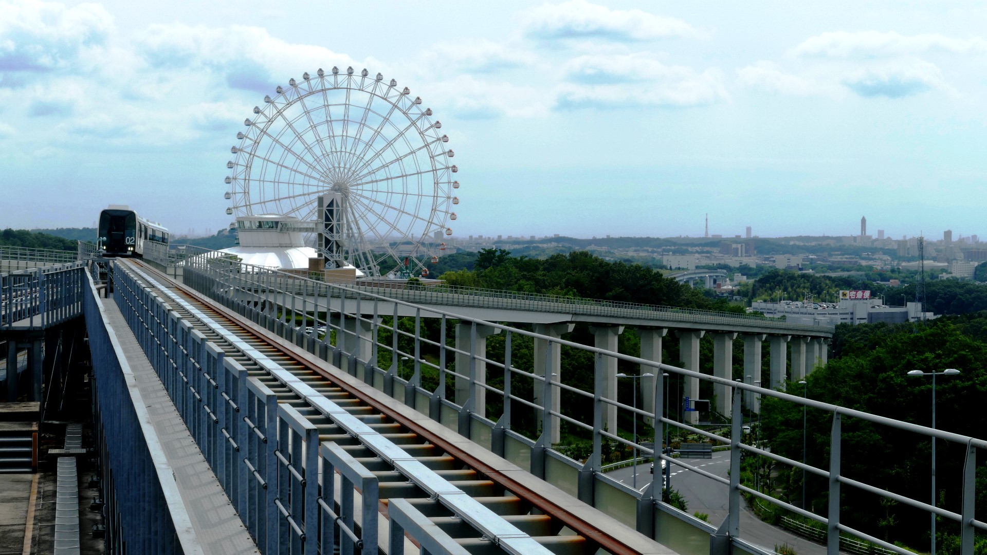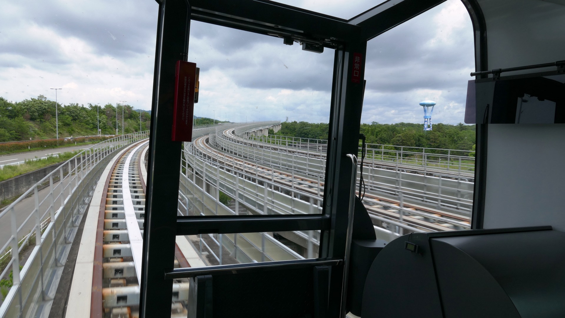 回送車、有人運転? | リニモの風景。 モリコロパークの大観覧車とのコラボは映える。遠くに名古屋のビル群も映える。街中の風景も映えるがはなみずき通から藤が丘間は地下に潜る。 | |||||