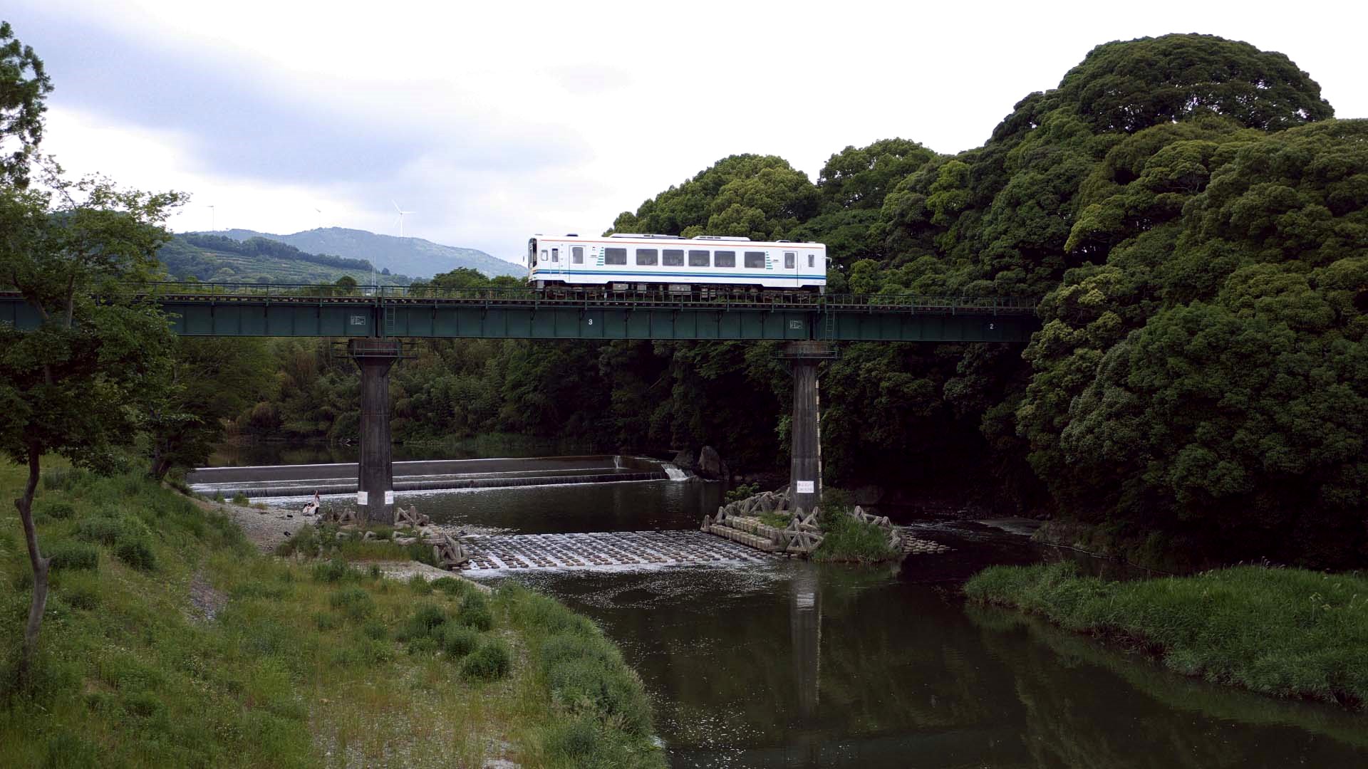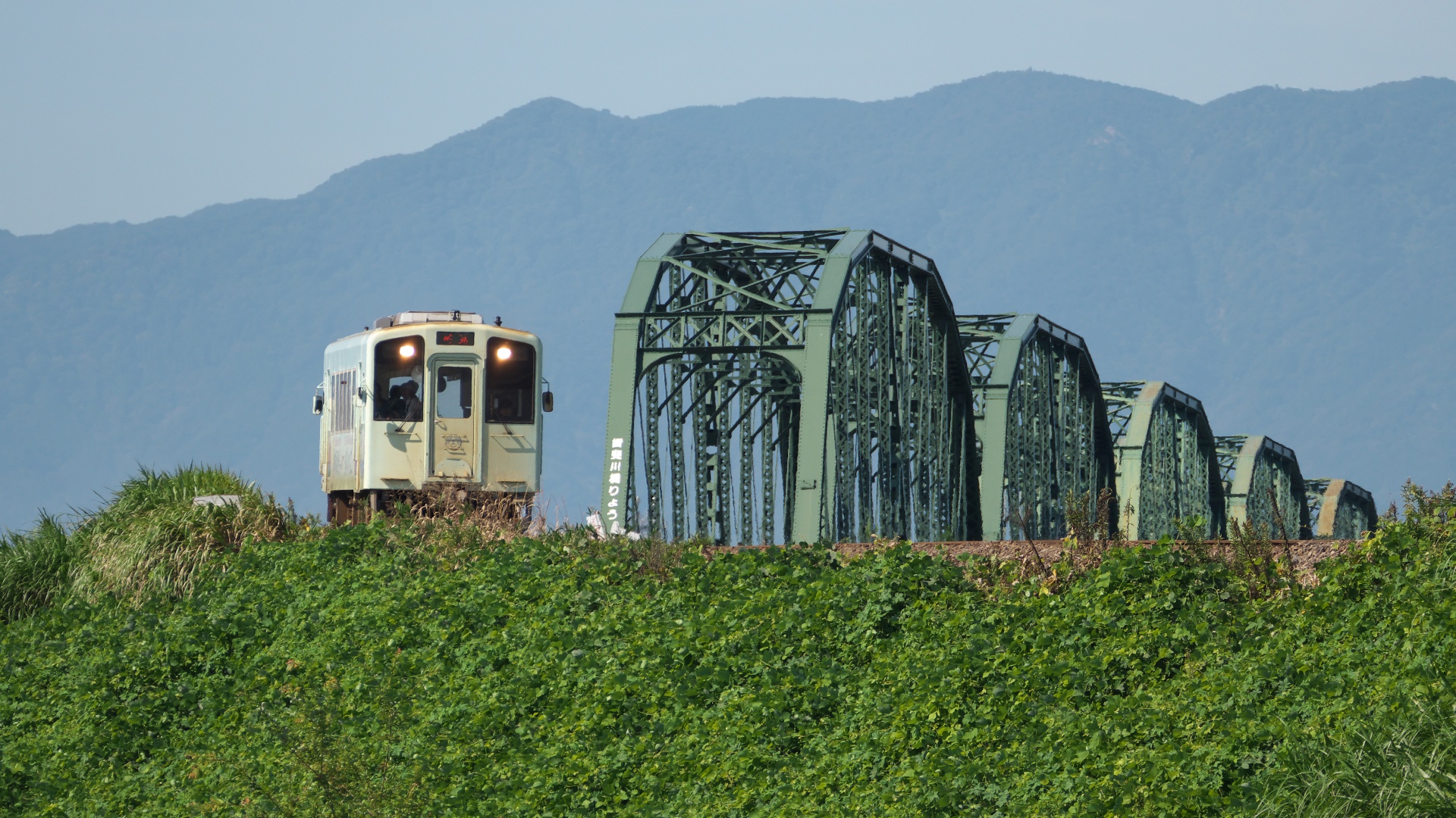 日当駅ホームより 第八根尾川橋りょうの向こうにも トンネルがある |