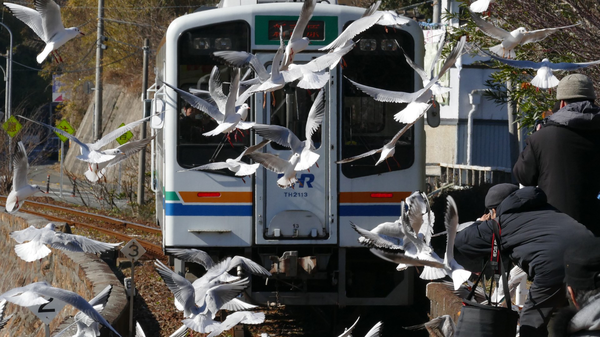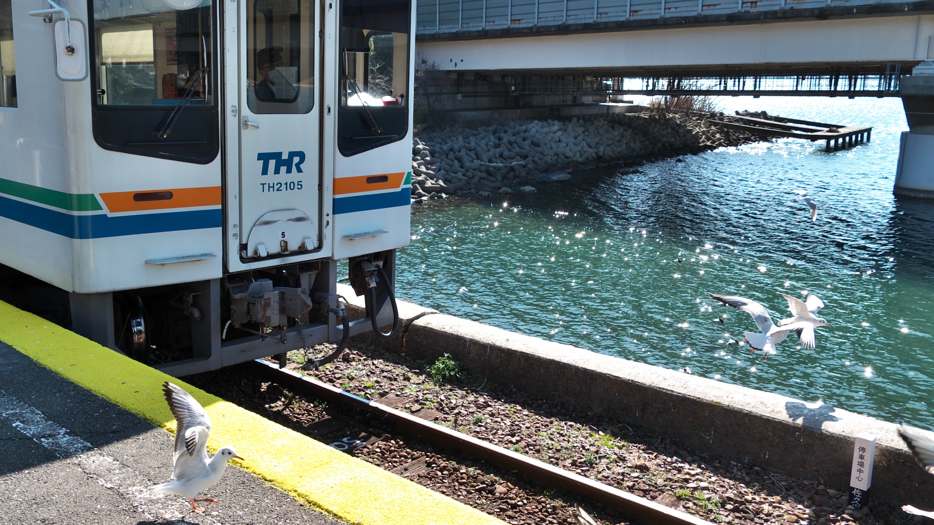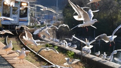 | 今年は鳥インフルエンザの影響で餌付け自粛のため「ユリカモメ」も激減とのこと。 例年の見ごろは餌である魚が海面上まで出てこない寒い1月頃らしい。 浜名湖佐久米駅 |