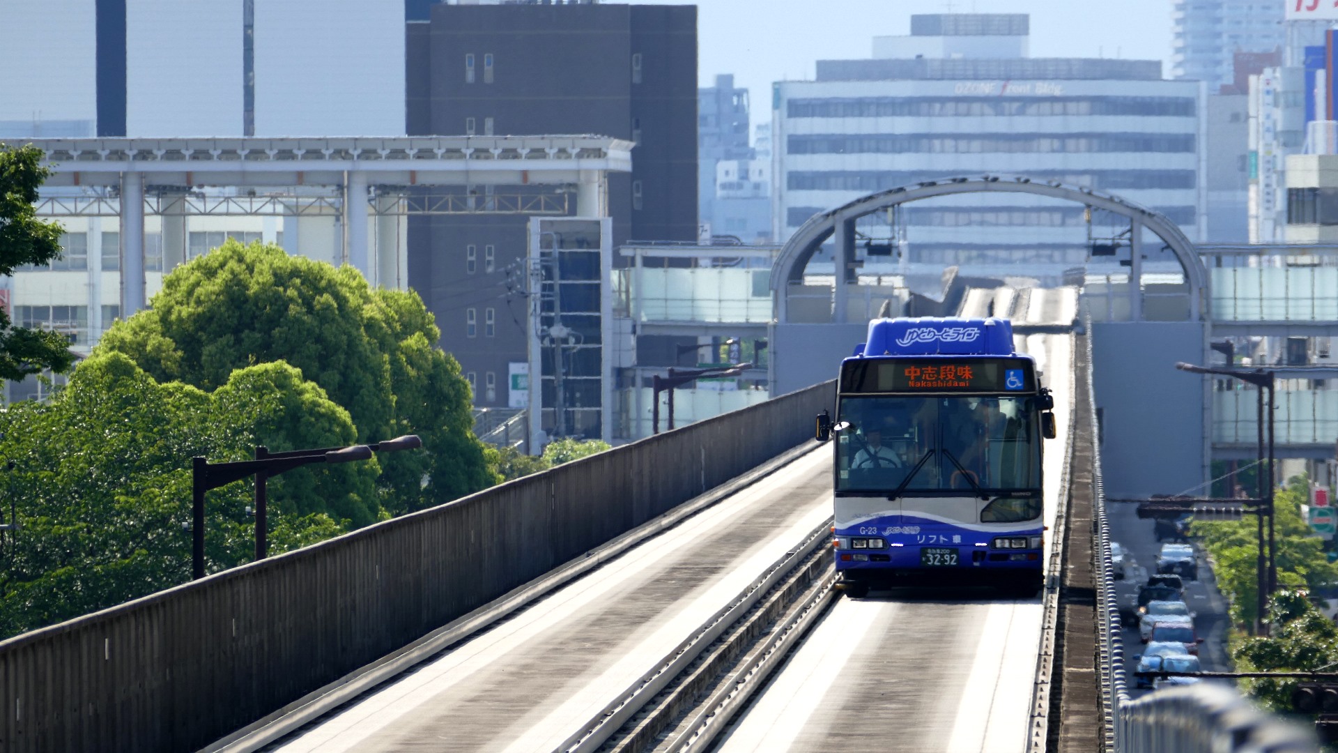 | ゆとりーとライン 名古屋ガイドウェイバス・志段味線の愛称。名古屋市・名鉄・JR東海バスが出資する第三セクター会社。大曽根駅から小幡緑地駅までの6.5Km区間は専用の高架区間を走行する鉄道。 |