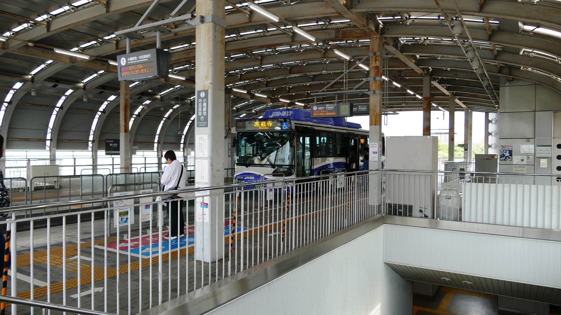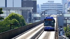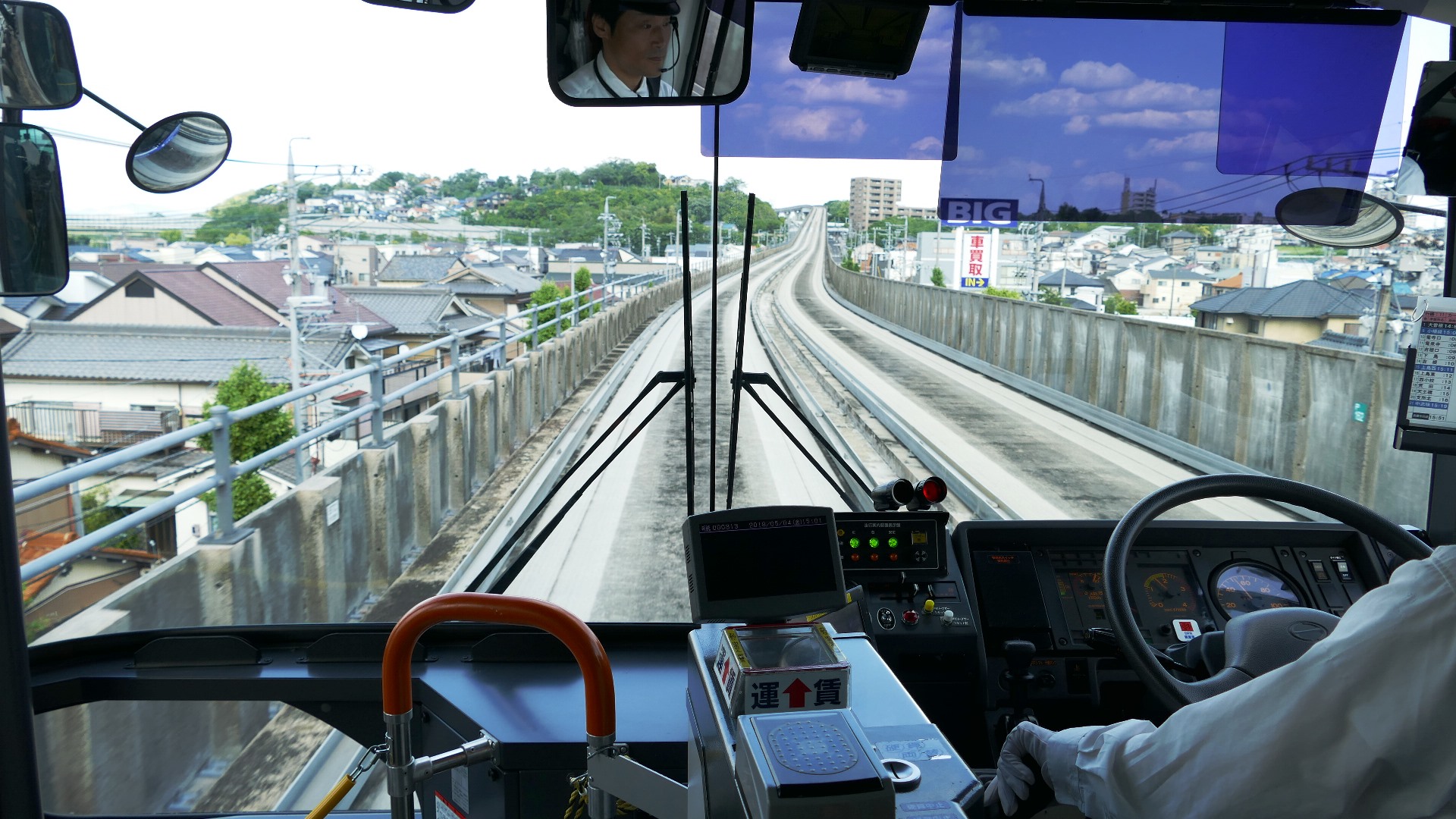 | ガイドウェイバスは、ガードレールを備えた専用軌道に対し案内輪でトレースするのでハンドルを持つ必要がなく、一般道においては普通のバスとして走行可能な、日本で唯一の新交通システム。 2018.5.4 | |||||||