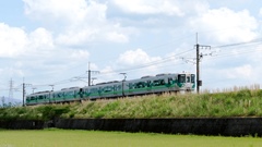 貝津-保見瀬 団体イベント列車 緑色帯の2パンタ車両4両編成 |