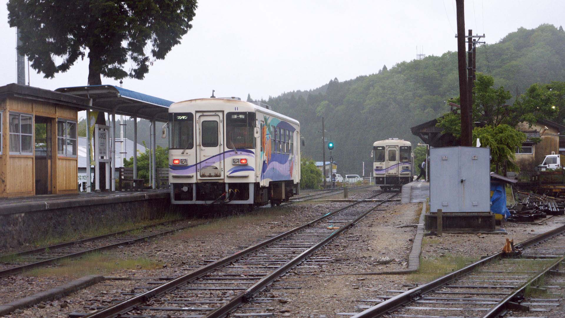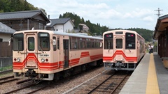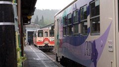 | 17D 飯沼-阿木 アケチ10形13号 | 17D 飯沼-阿木 アケチ10形13号 後追い | 岩村駅 20D(11号)と17D(13号) 岩村駅は明知鉄道で上下列車の 交換設備がある唯一の駅 |