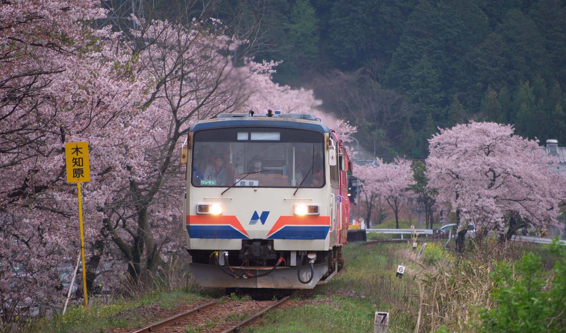 | 樽見鉄道 1984年、西濃鉄道・住友大阪セメントおよび沿線自治体などが出資する第三セクター方式の鉄道会社として設立。 国鉄樽見線時代の運行は"大垣-美濃神海"だったが、 1989年に神海 - 樽見間延長開業している。 写真にある「ナガラ1形」は、ハイモ295-315が事故に遭い長期離脱のため桜ダイヤに合わせその穴埋めとして借り入れているらしい。 |