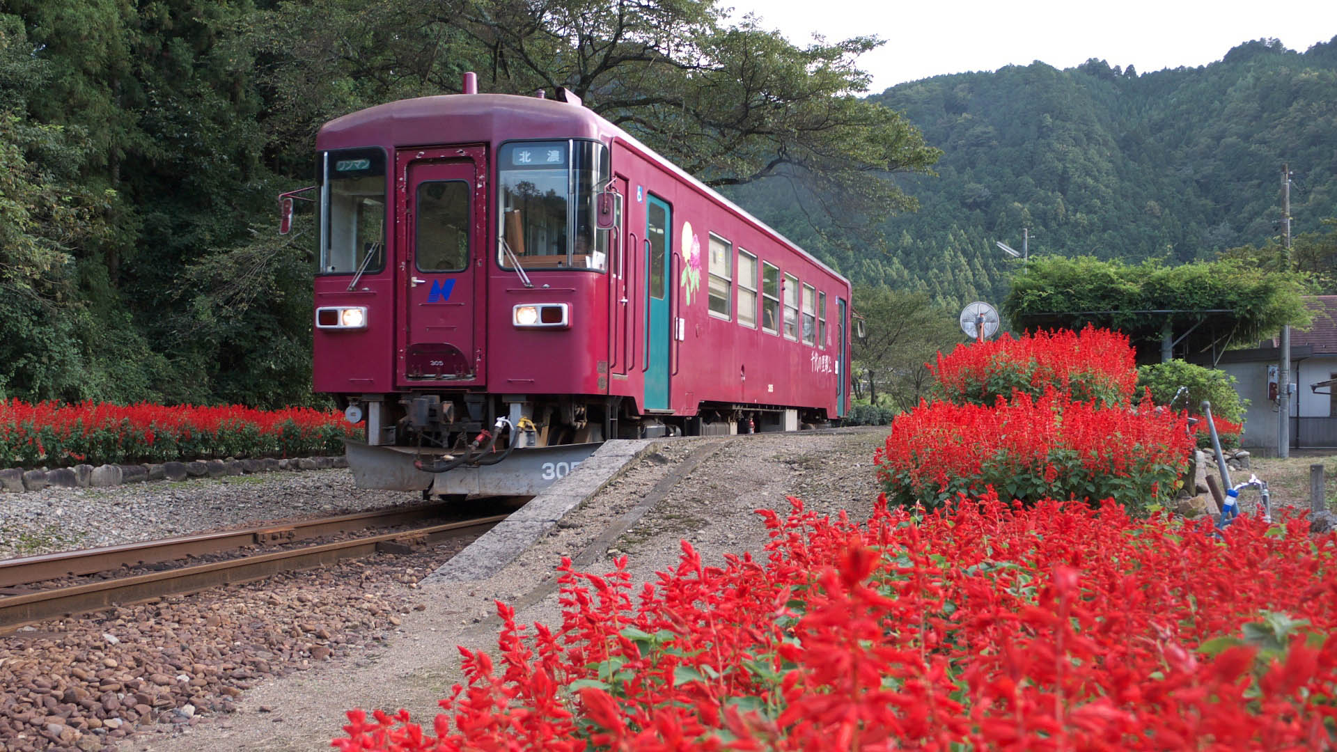 湯の洞温泉口駅は秋はサルビアやコスモス、春は芝桜や藤が列車に彩りを添える。 2011.09.18 | 北濃駅 2012.07.08 |