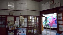 明智駅の改札口。 アケチ10形12号が見える。 |
