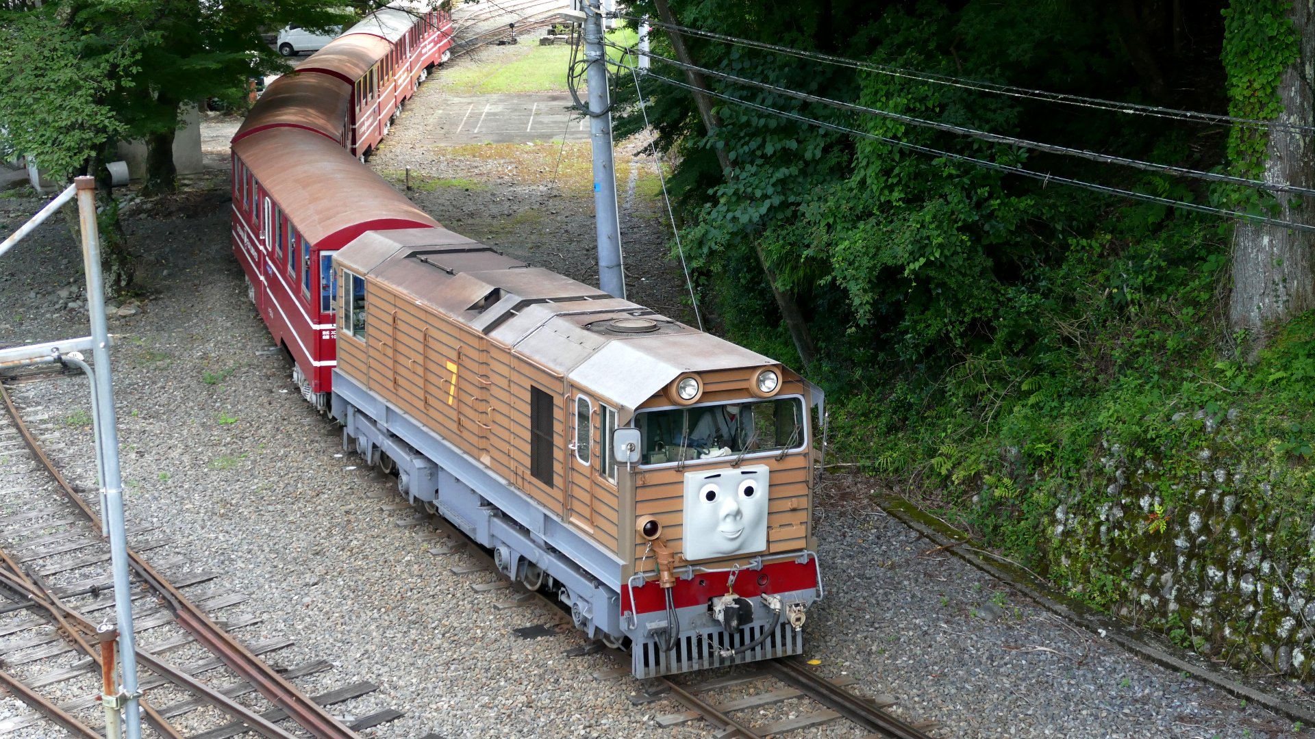 東急7200形→十和田観光電鉄から2014年に譲り受けた。運搬・改造に8000万円支出。 | 元・京阪3000系テレビカー 京阪とは軌道幅が異なるので、営団地下鉄の台車を移植。2014年引退。 |