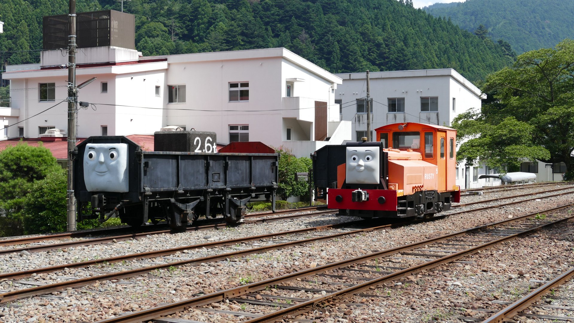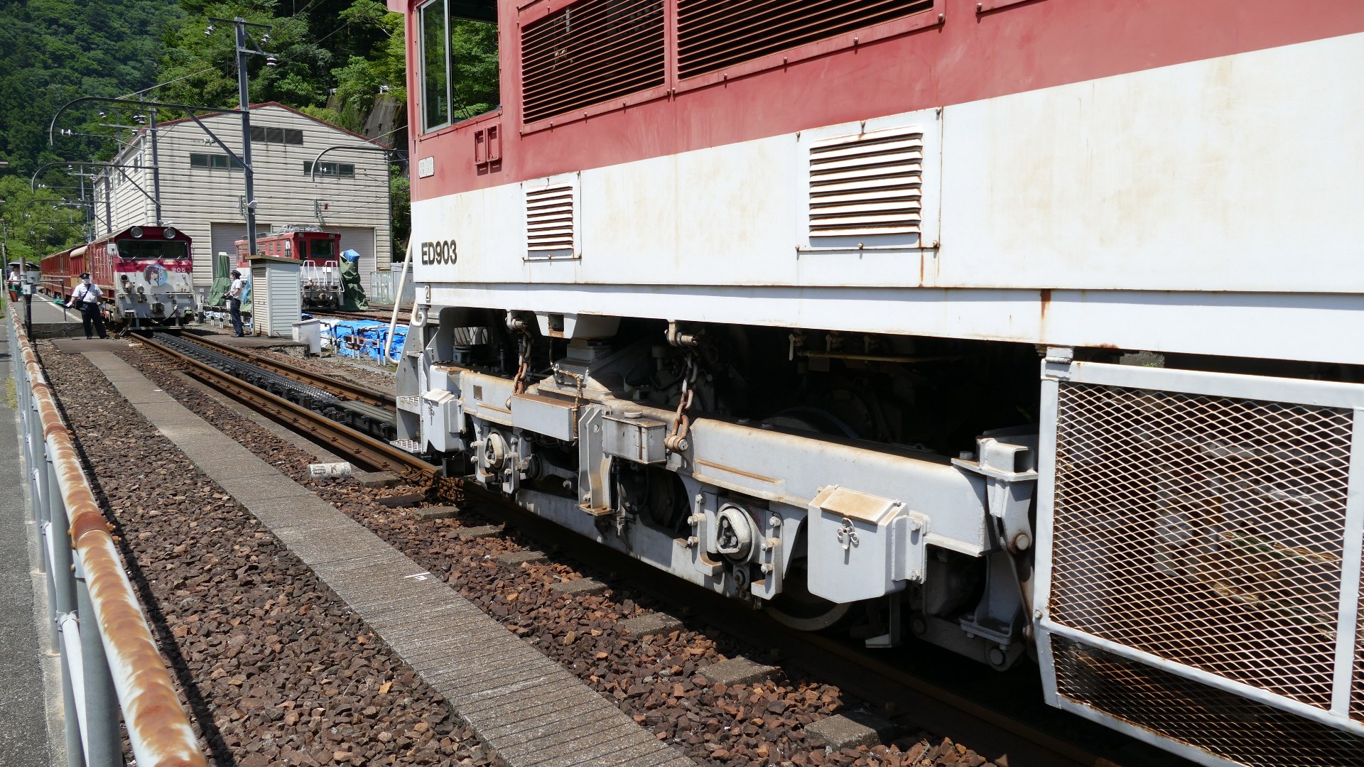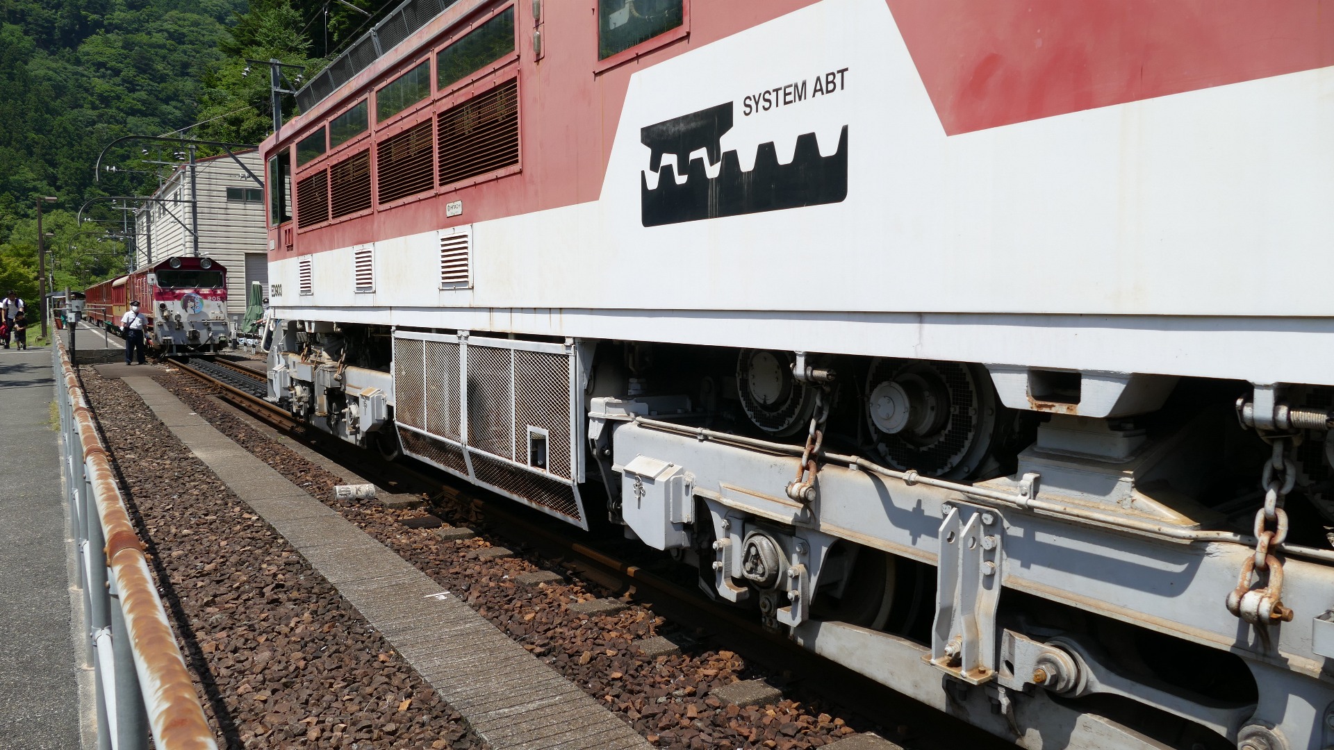 | アプト式機関車の連結 アプトいちしろ駅にて |