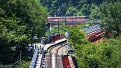 | 愛知高速交通(リニモ Linimo 東部丘陵線) 藤が丘駅から八草駅までを結ぶ、愛知高速交通の常電導吸引型 (HSST) による日本初の磁気浮上式鉄道(リニアモーターカー)である。 電動機や車輪を持たないため、騒音・振動源が少ない。停車中は機械式ブレーキにより静止させている。 通常はATOによる無人自動運転を採用している。 |