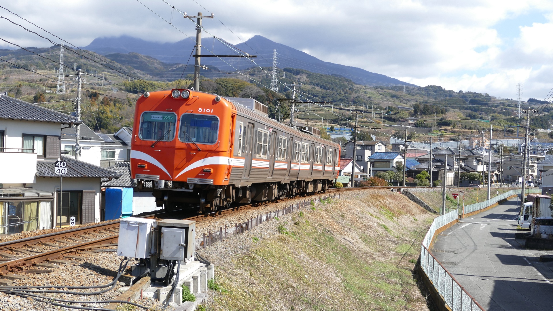 北勢線 大泉-楚原 坂を上った所に楚原駅がある。 |