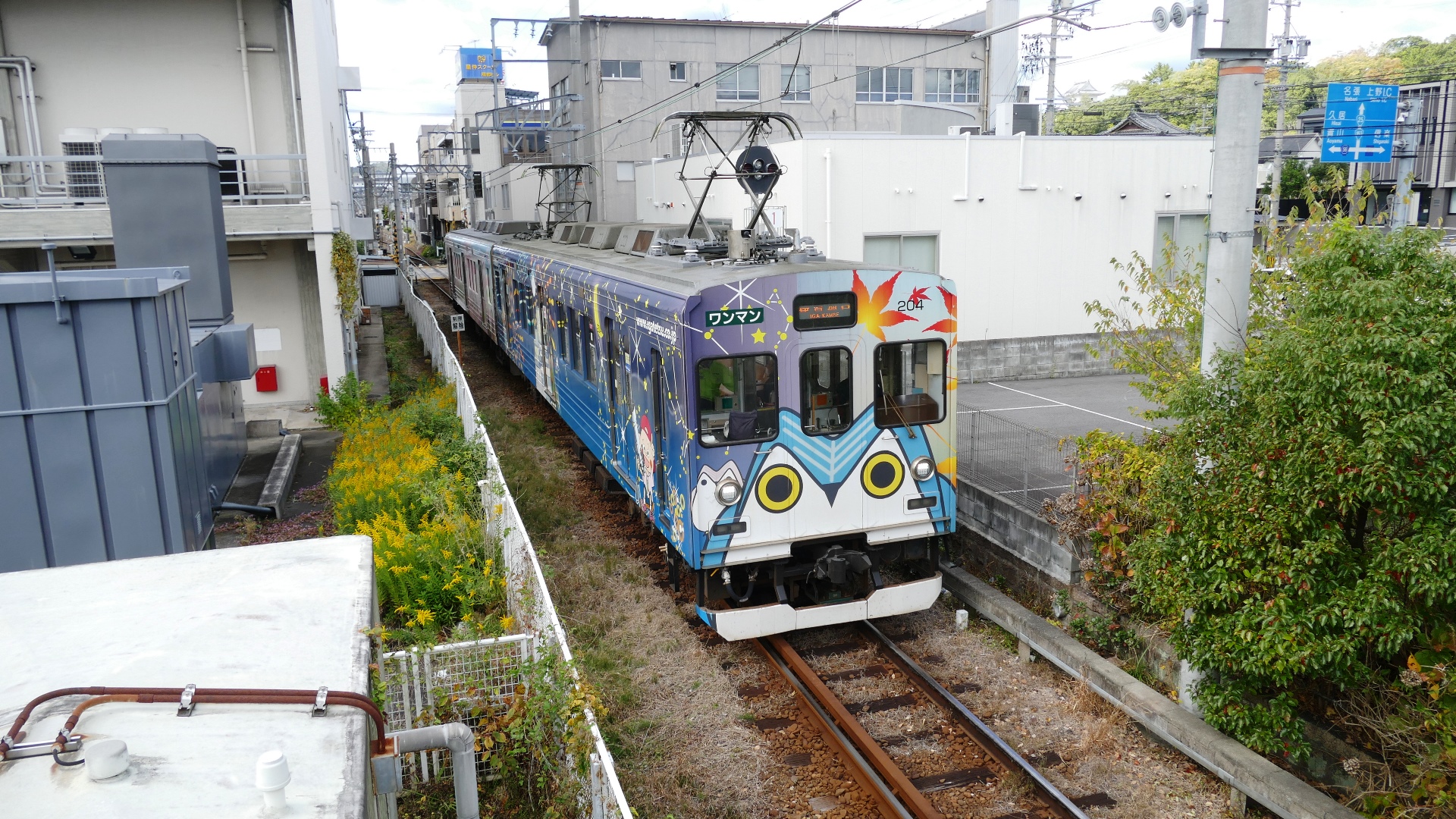 | 日永駅:内部線と八王子線の分岐駅。 2016.7 四日市市のマスコットキャラクター「こにゅうどうくん」のラッピング車両 |