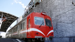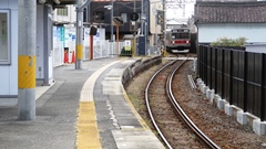 | 石畳の線路の先はけっこうな急坂 | 日本で最急曲線の半径11m | 全国で唯一、路面電車が国道1号線を走る。 | 「駅前」と言う名の駅名もおもしろい。 | ||||