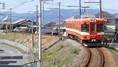 桜ダイヤ臨時列車の8001号、 日当駅到着 ハイモ295-516 |