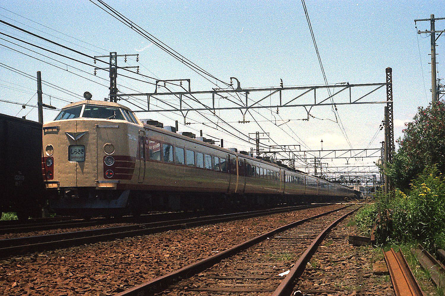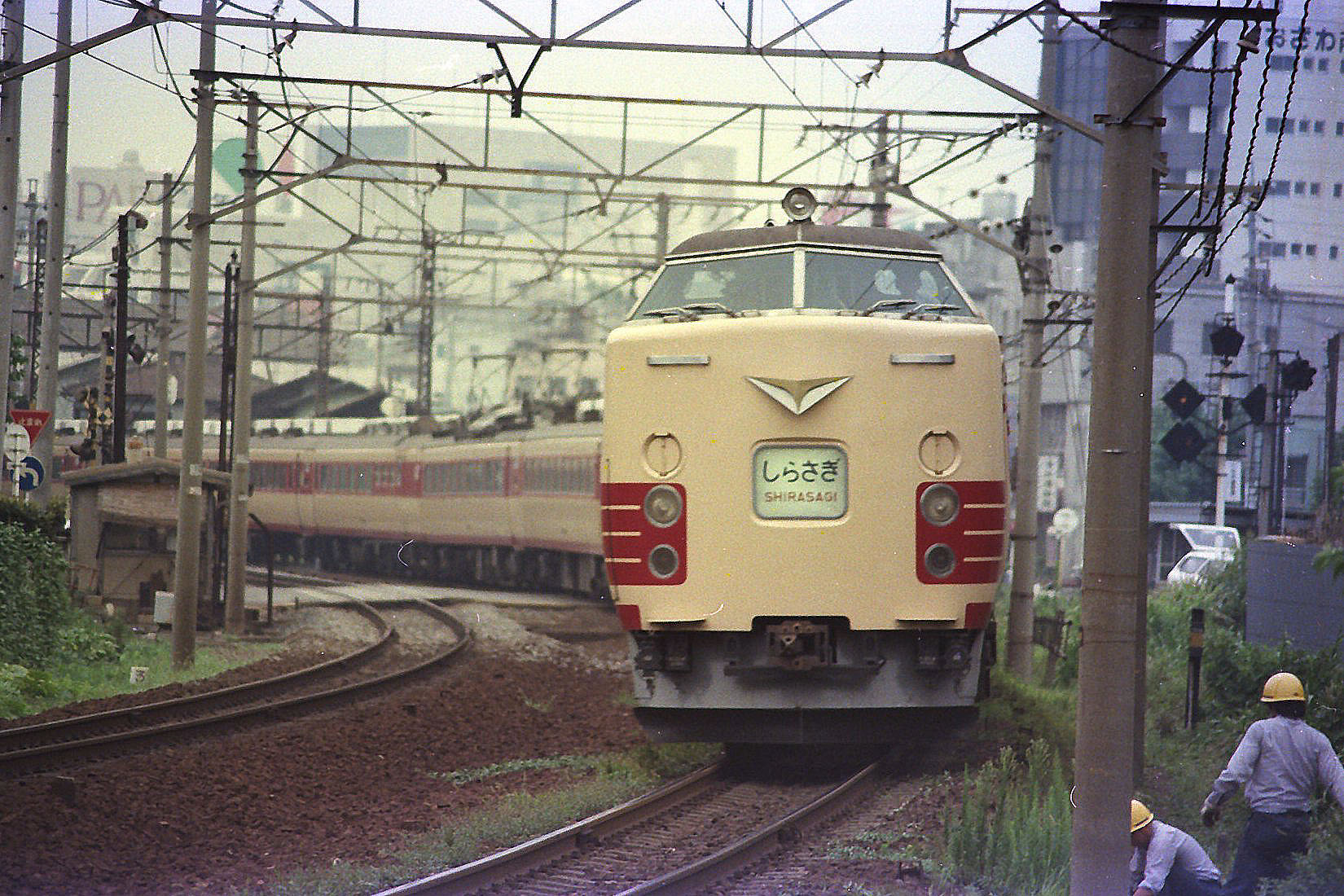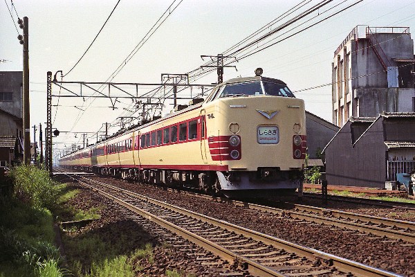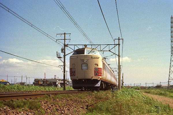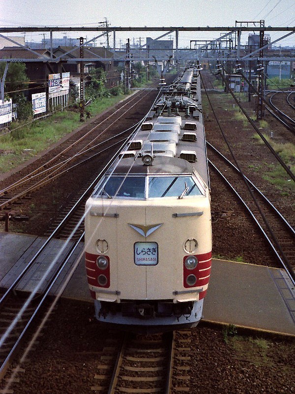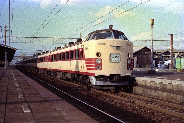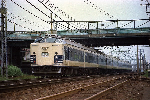 I 485系0番台 撮影:昭和5?年 尾張一宮駅 スカートが塗装なし! |