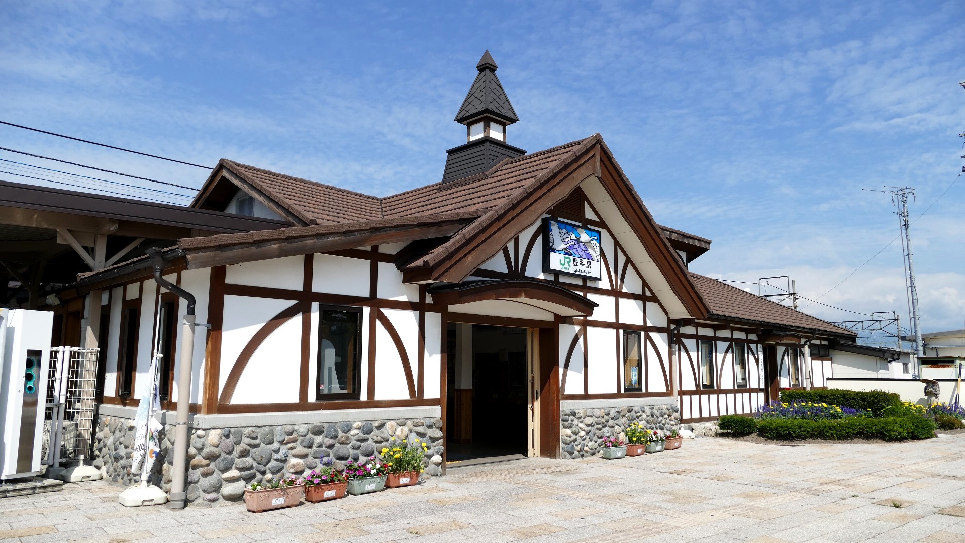 | 大糸線 豊科駅 メルヘン調の駅舎 2016.7.24 |