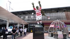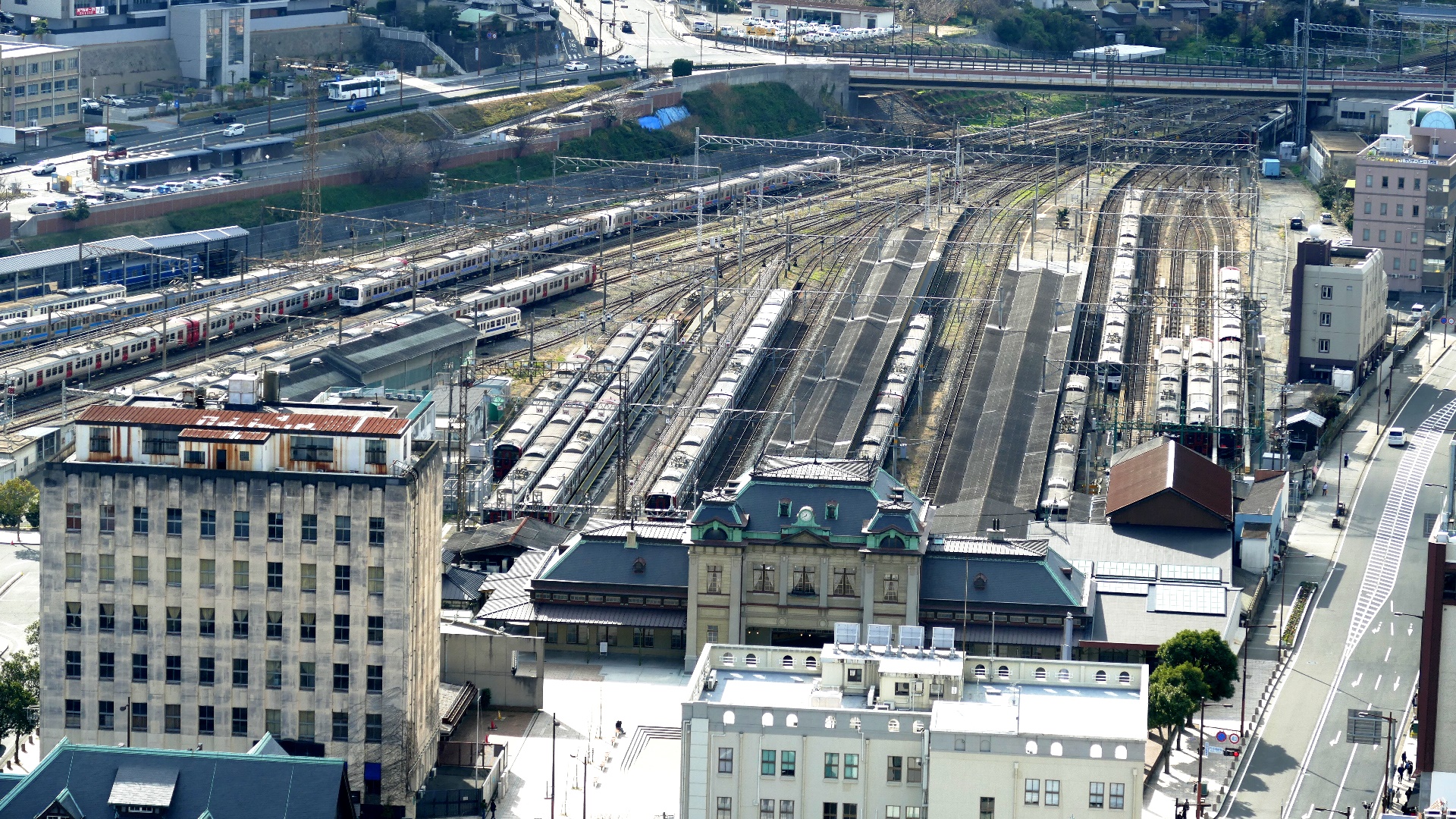 | 小倉駅 「北九州モノレール」が駅に直結している。 2012.1,2015.1 | 別府駅 2019.5 駅前の像は、別府温泉の宣伝に私財を投じ尽力した「油屋熊八」 |