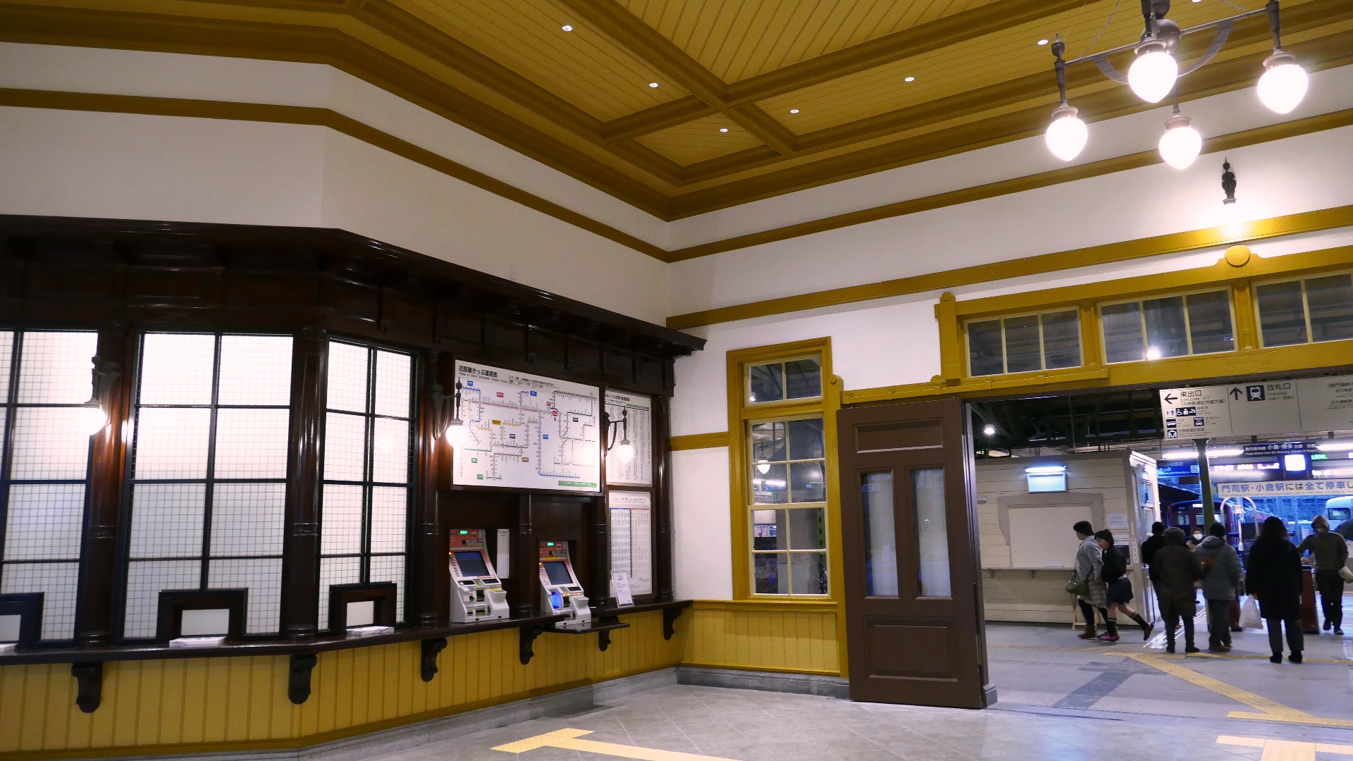 | 門司港駅 復原後 貴賓待合室等も見学できる。トイレや駅員の制服も当時を再現している。 復原ポスター 2020.1 | |||||||