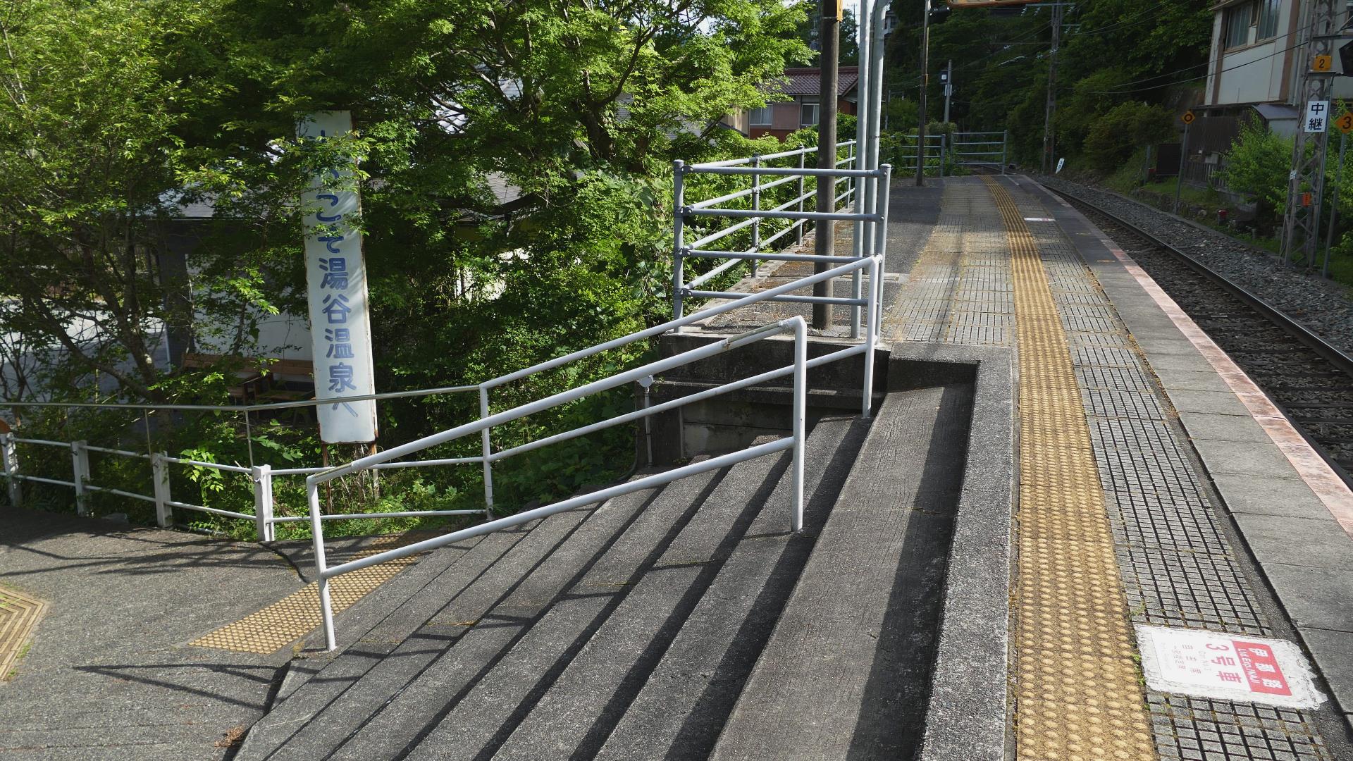 湯谷温泉駅 2020.5 特急停車駅だが現在は駅舎もなくひっそりと佇む無人駅。 |
