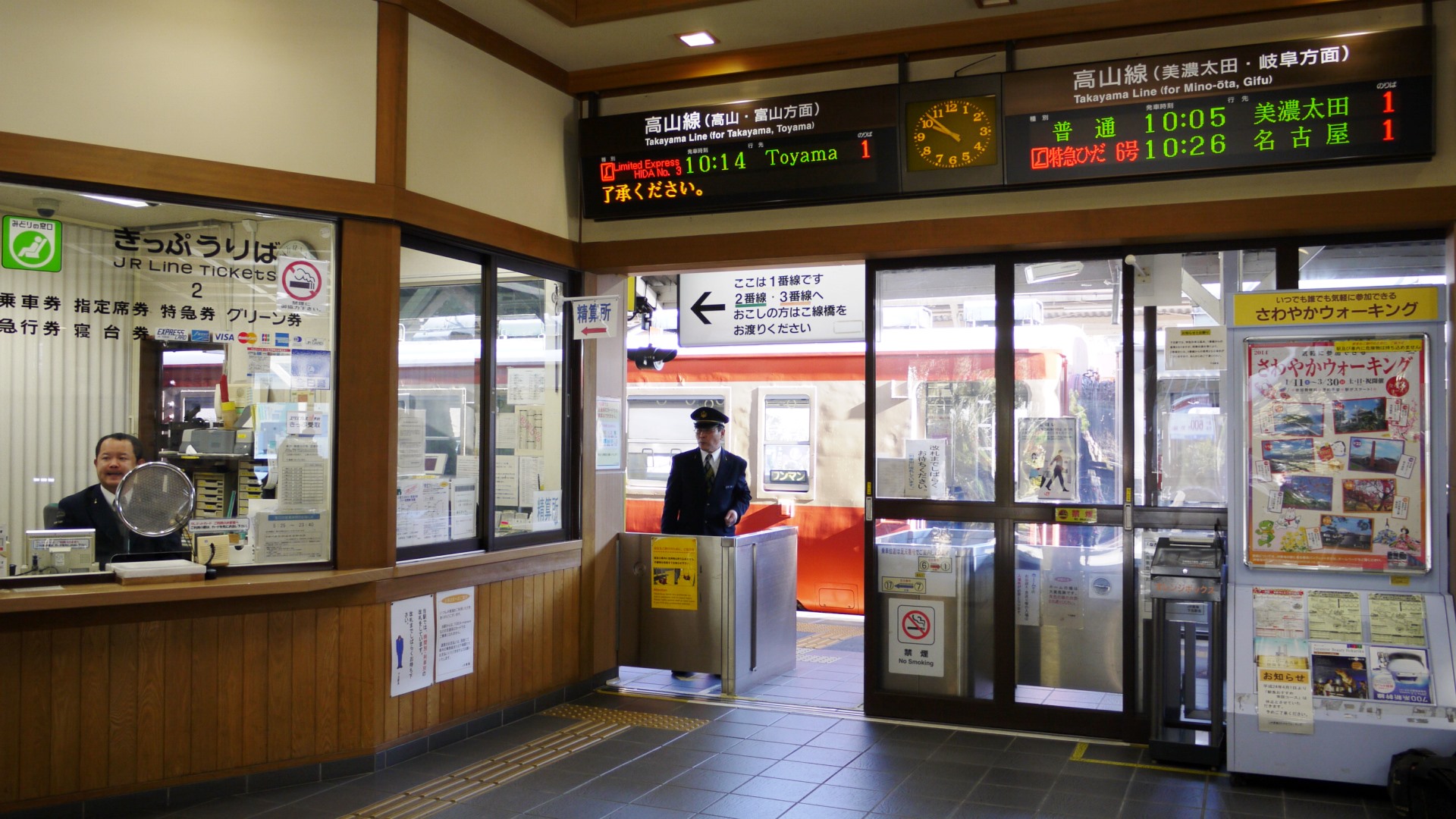 | 高山駅 2014.1.5 | リニューアルした高山駅 高山祭の山車や、ベンチには「さるぼぼ」のイラストがありGood。改札は2階に移り、ホームは変わらず1階のまま。 2017.11 | 白川口駅 2017.11 | |||||