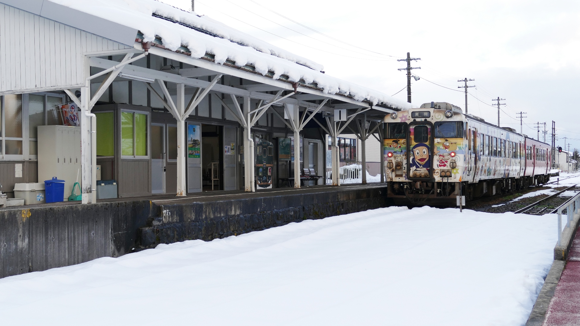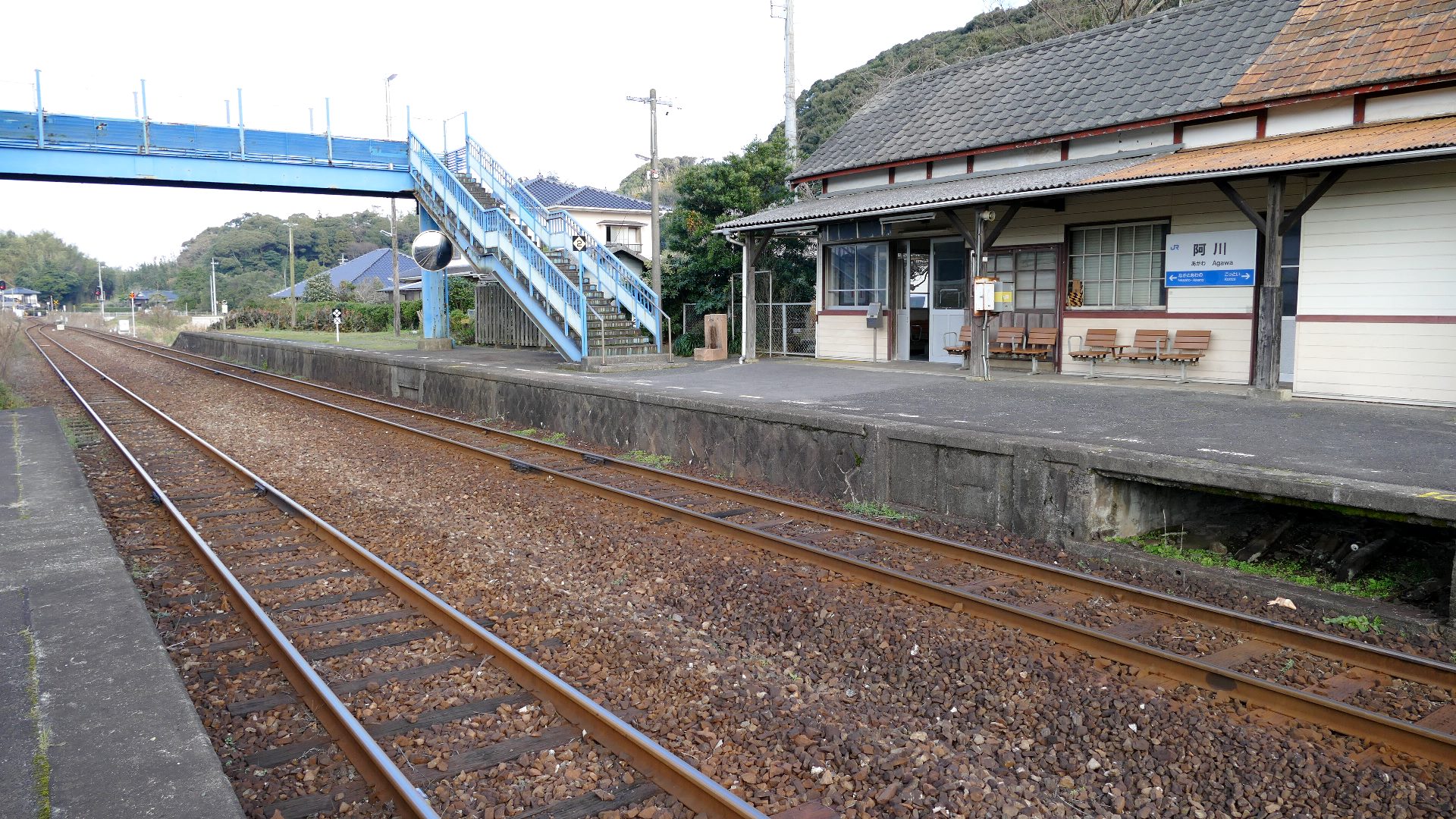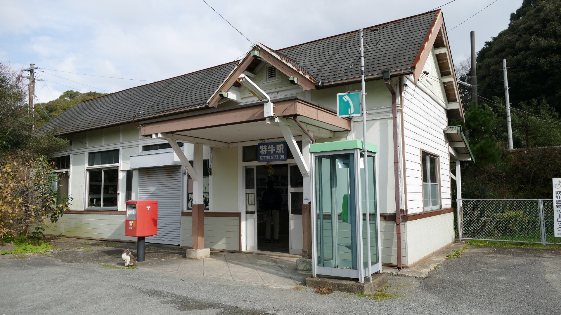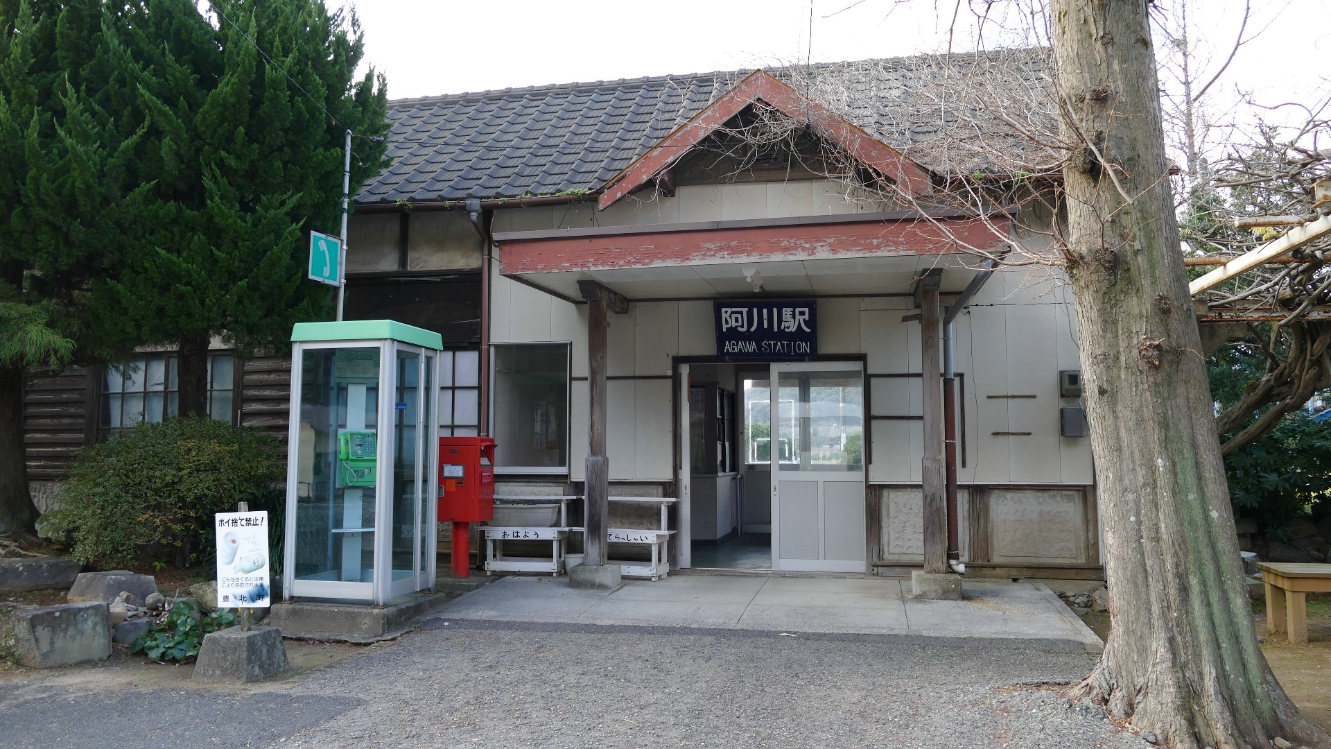 | 山陰本線・特牛駅(山口県) 難読駅名「こっとい」 2017.1.1. | 山陰本線・阿川駅 特牛駅と同じような造りの駅舎 2017.1.1 | ||||||