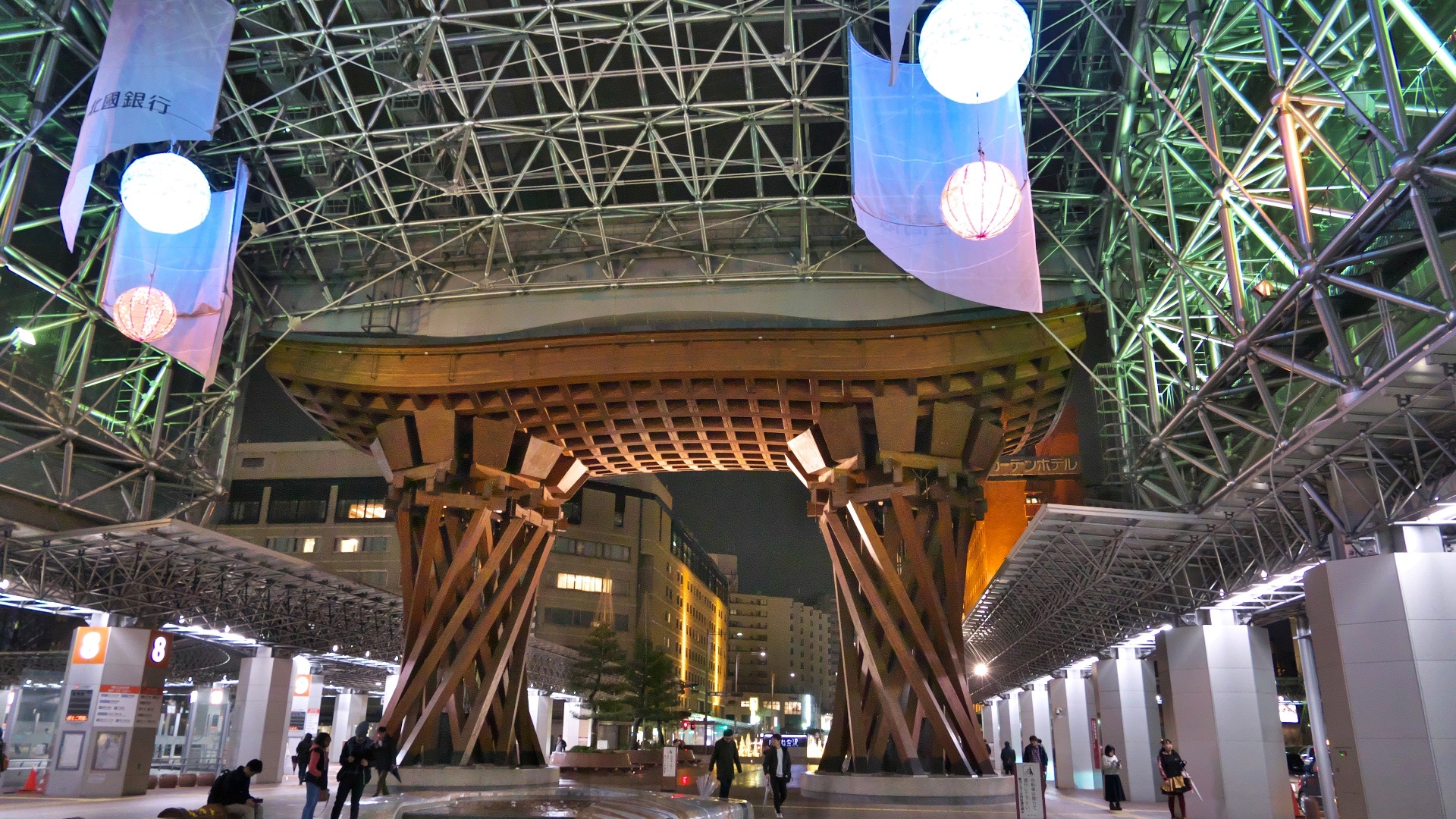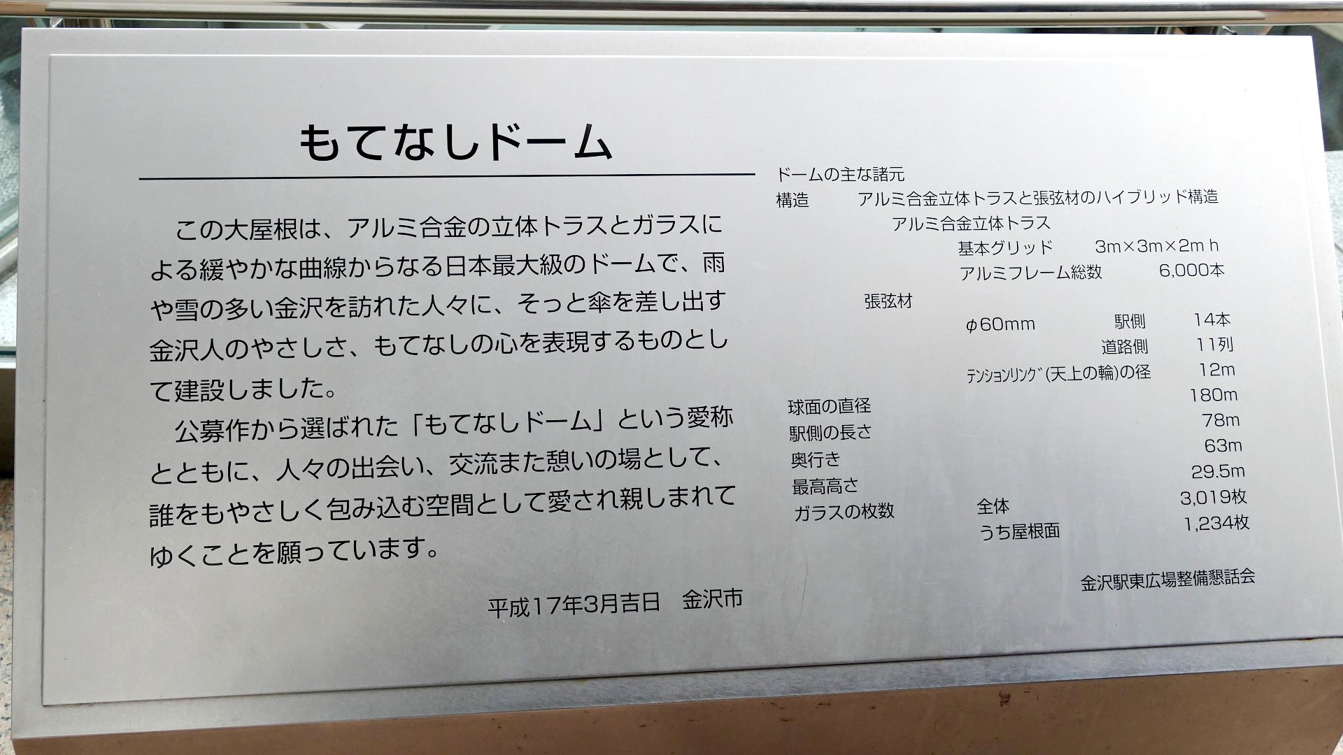 | 金沢駅 兼六園口・鼓門 もてなしドーム説明板 世界で最も美しい駅14選 ペッパーくんや「ひゃくまんさん」などのモニュメント。 在来線は自動改札導入前。新幹線ホーム支柱には金箔が巻かれている。金沢港口側には市制百周年モニュメント説明板 金沢紀行はこちら 2017.2. 2017.11 |