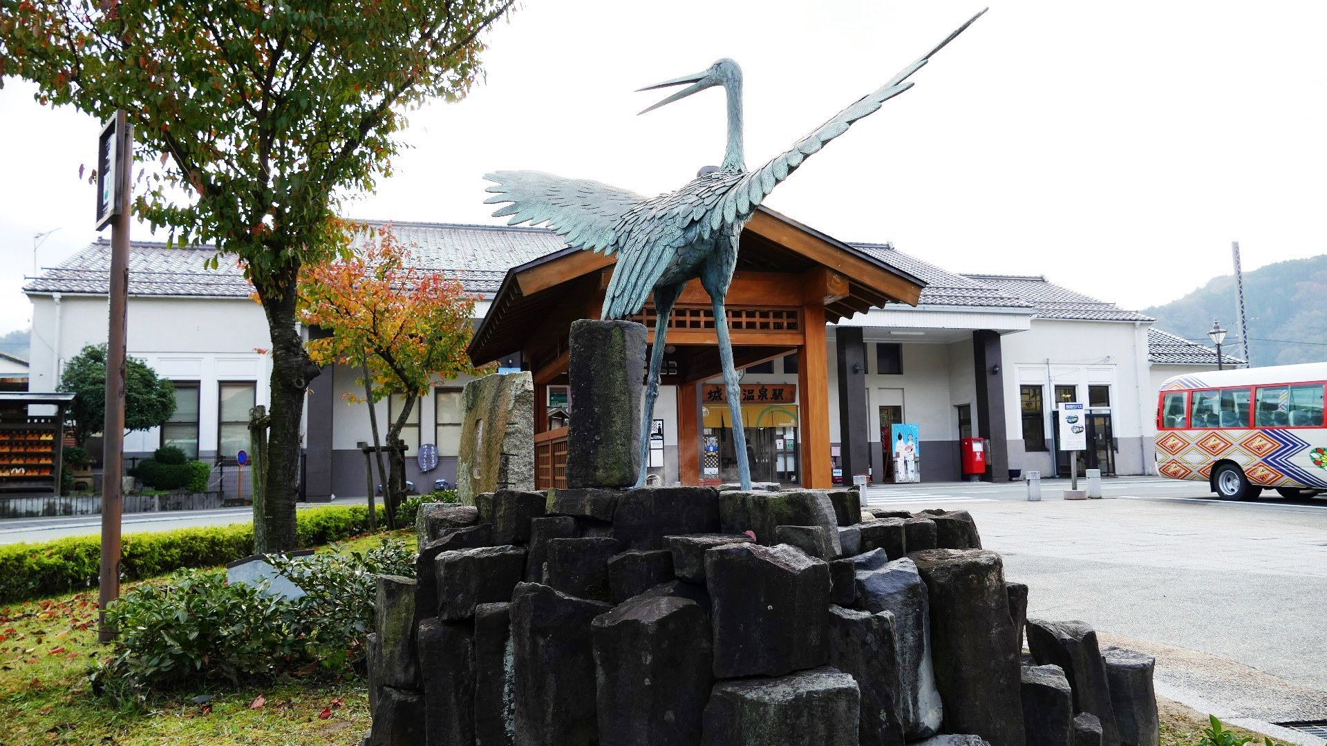| 山陰本線 城崎温泉駅 こうのとりモニュメントが迎える。 2014.11 | |||||||