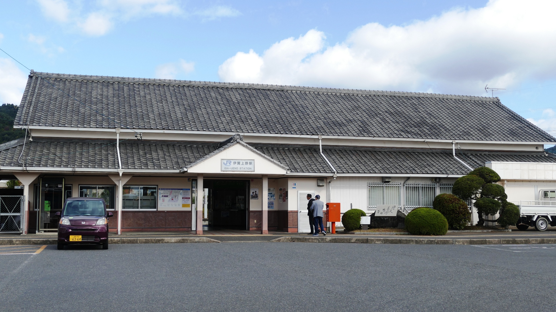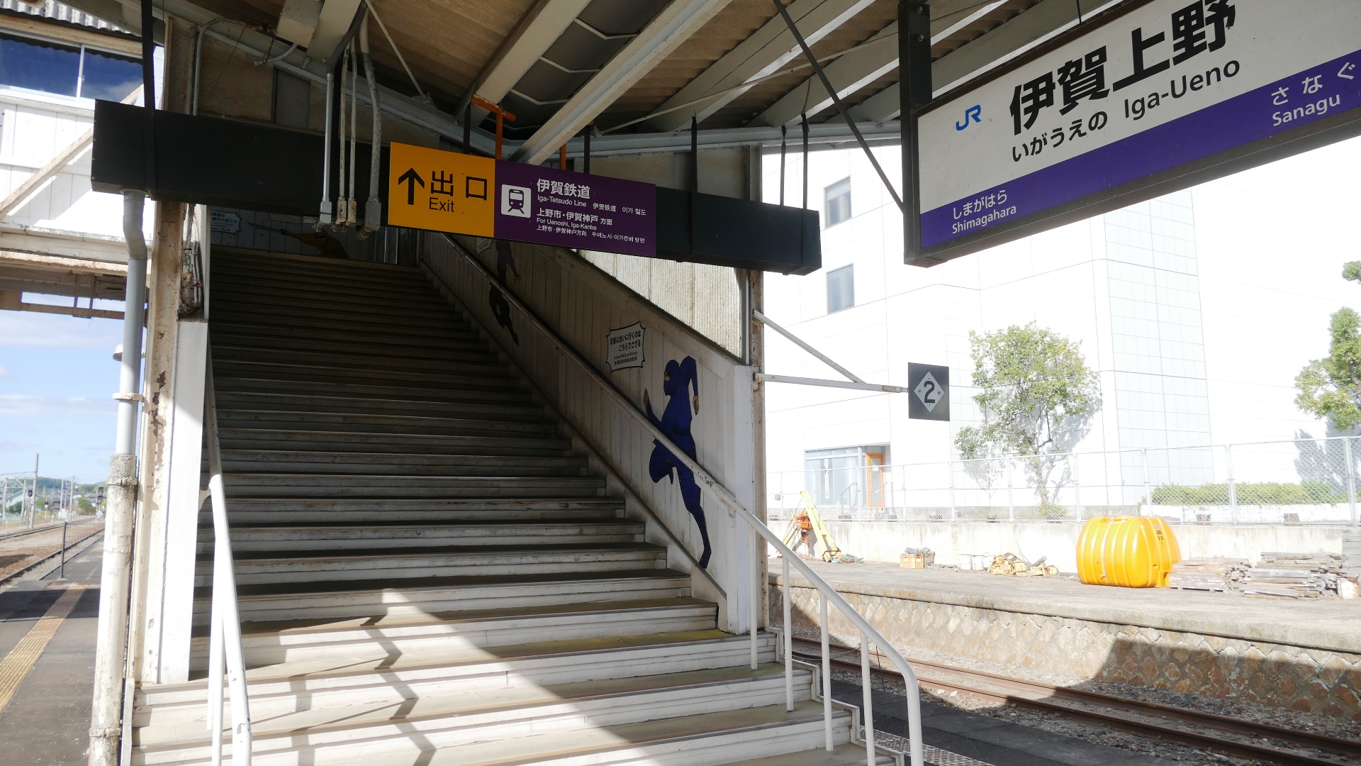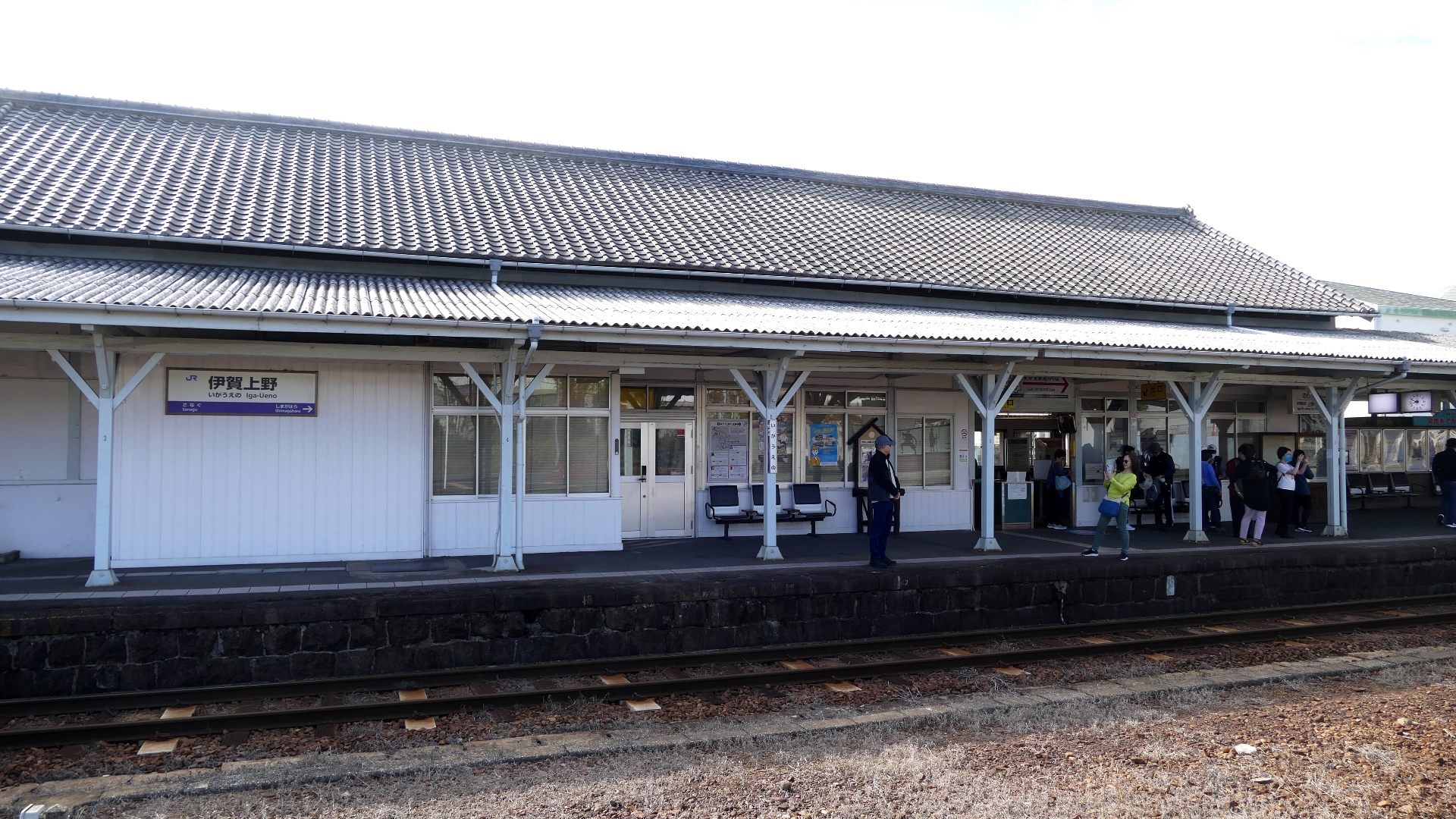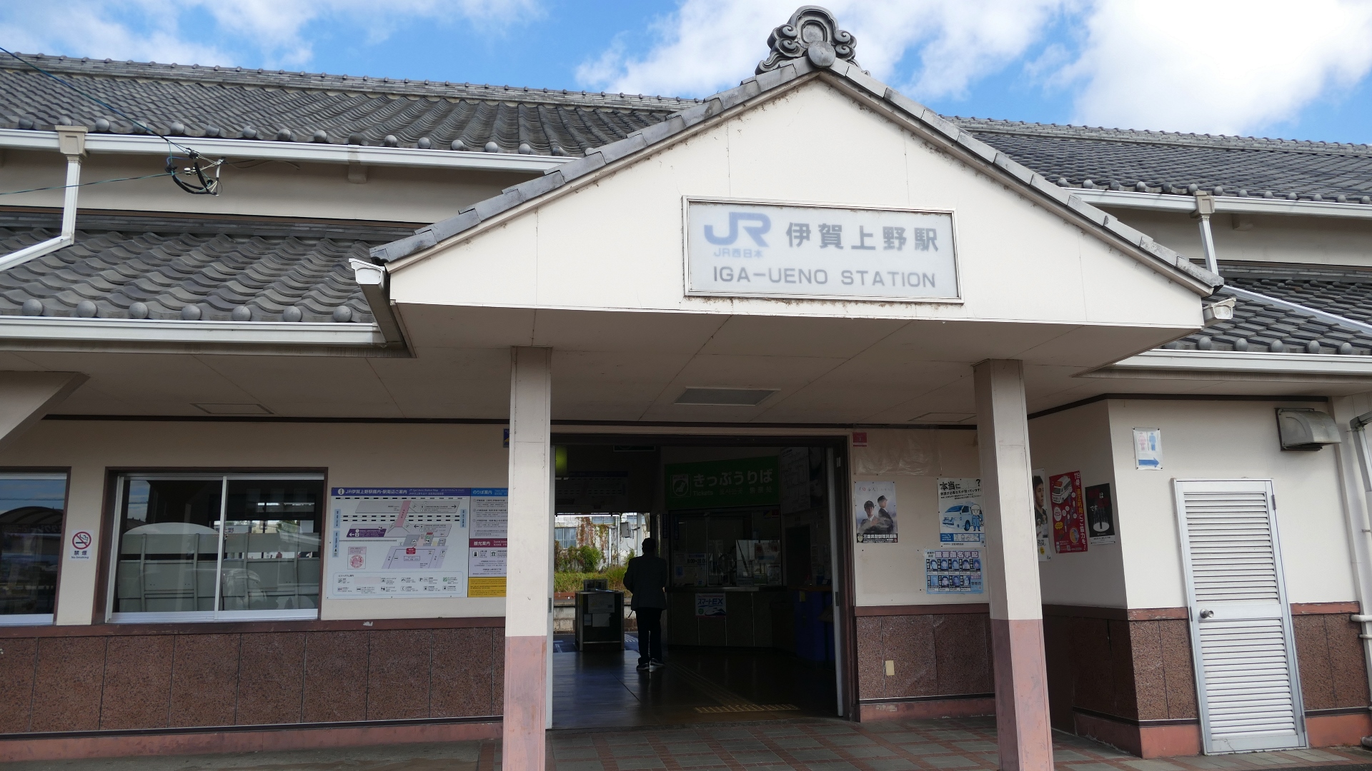 | 関西本線・伊賀上野駅 伊賀鉄道の接続駅 社殿造りの立派なトイレや忍者をPRするなど趣のある駅。 2023.10 | |||||||
