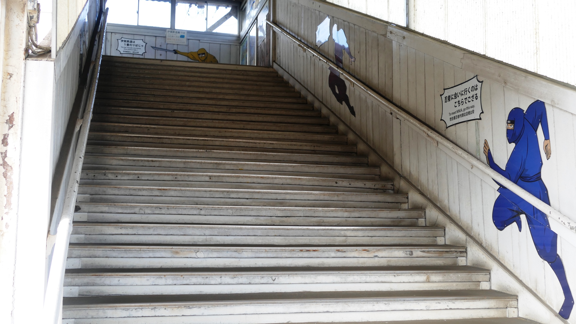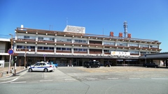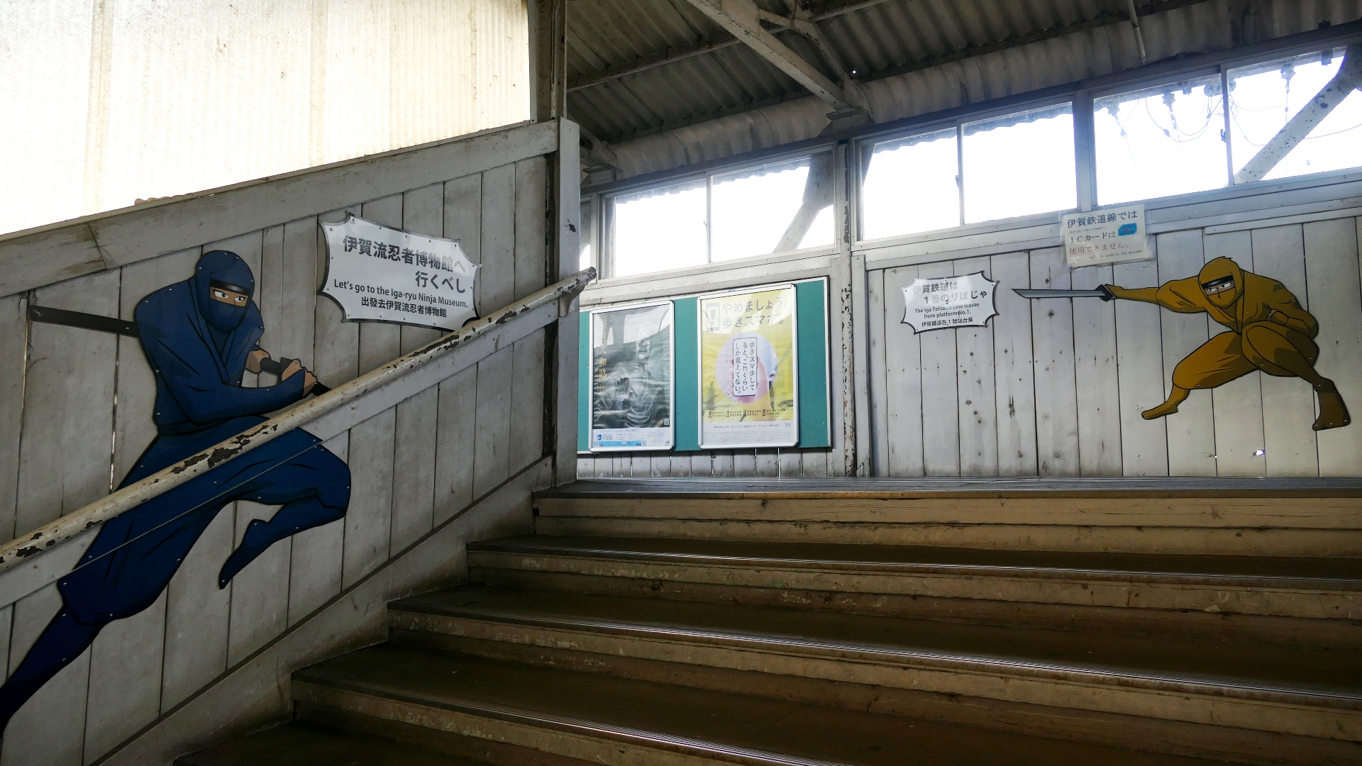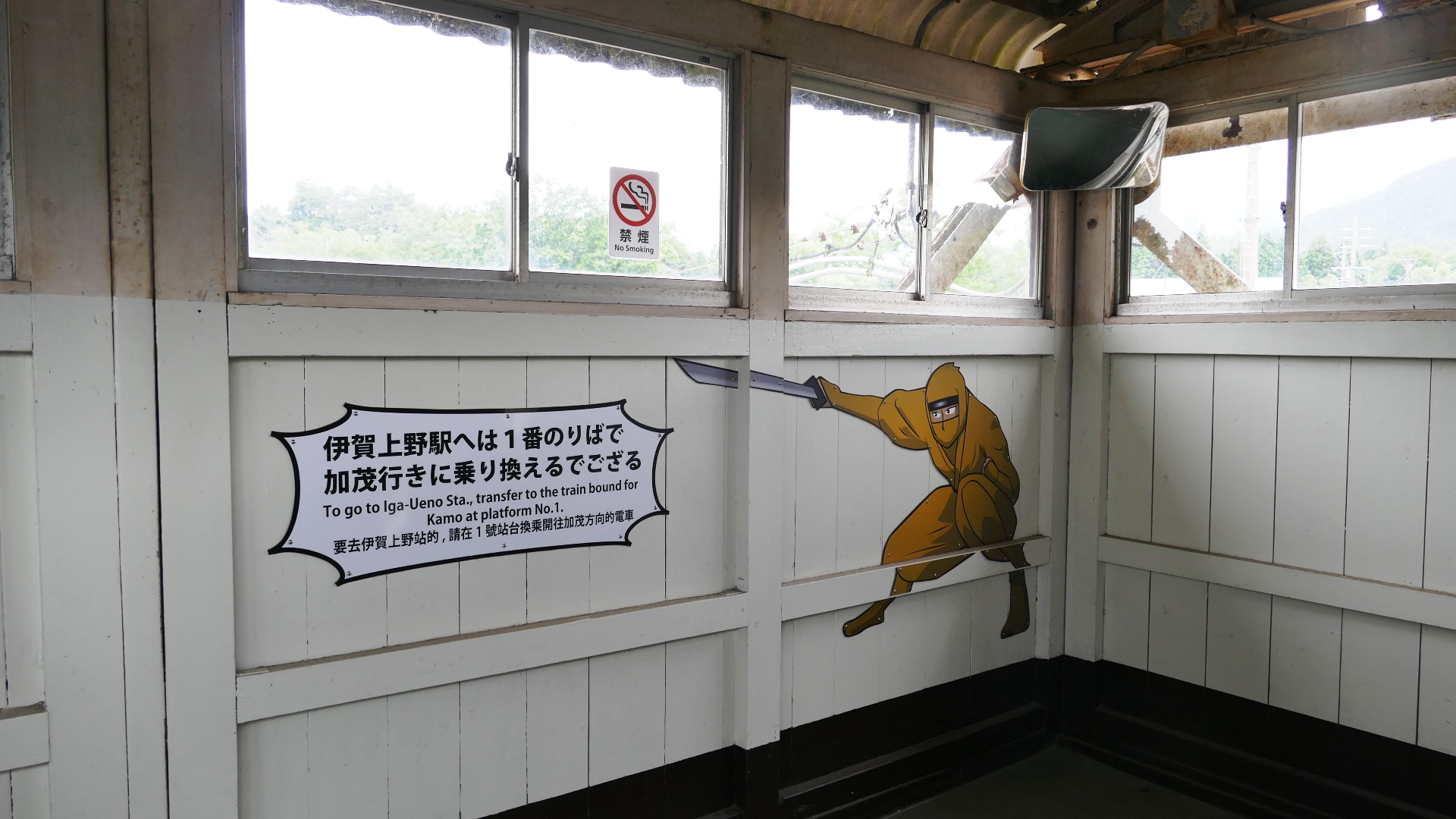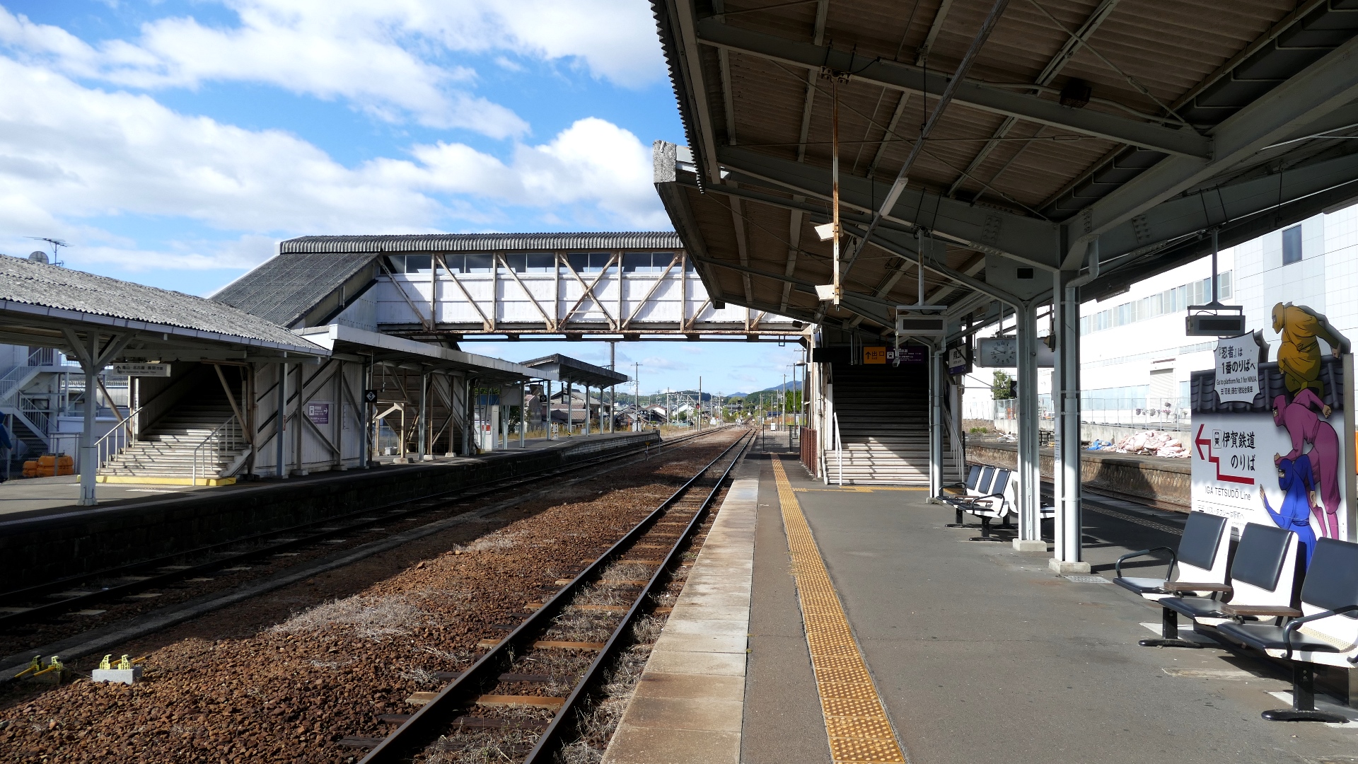 | 関西本線・伊賀上野駅 伊賀鉄道の接続駅 社殿造りの立派なトイレや忍者をPRするなど趣のある駅。 2023.10 | |||||||