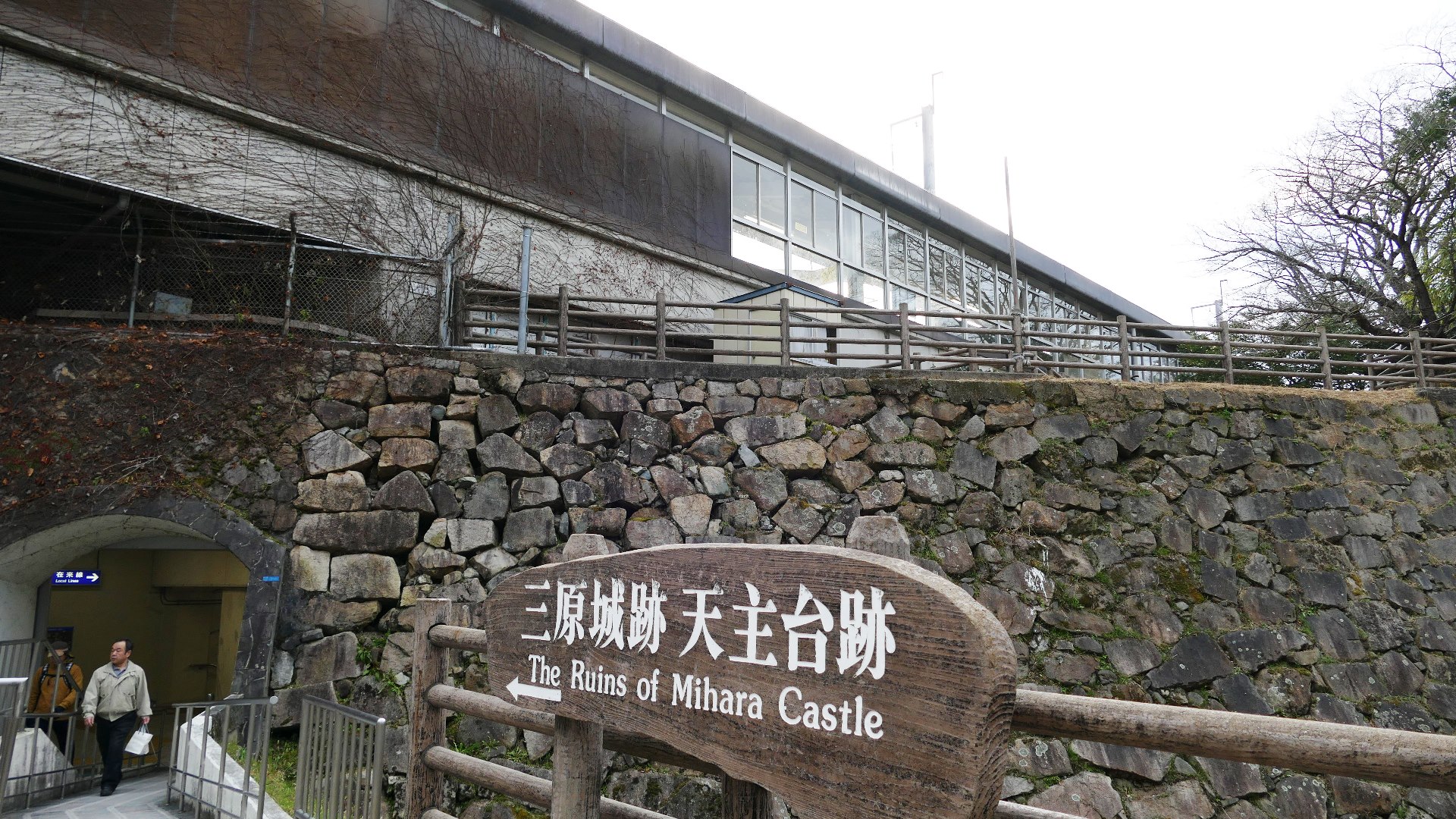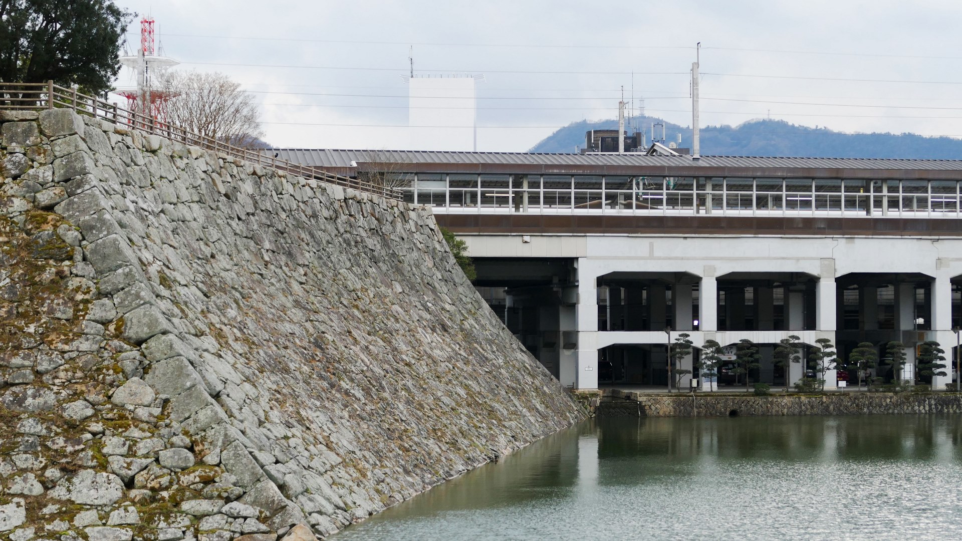 三原駅 明治27年に三原城本丸跡を鉄道が貫き三原駅が開業。 石垣の上にホームがあるという珍しい駅。 2019.1 |