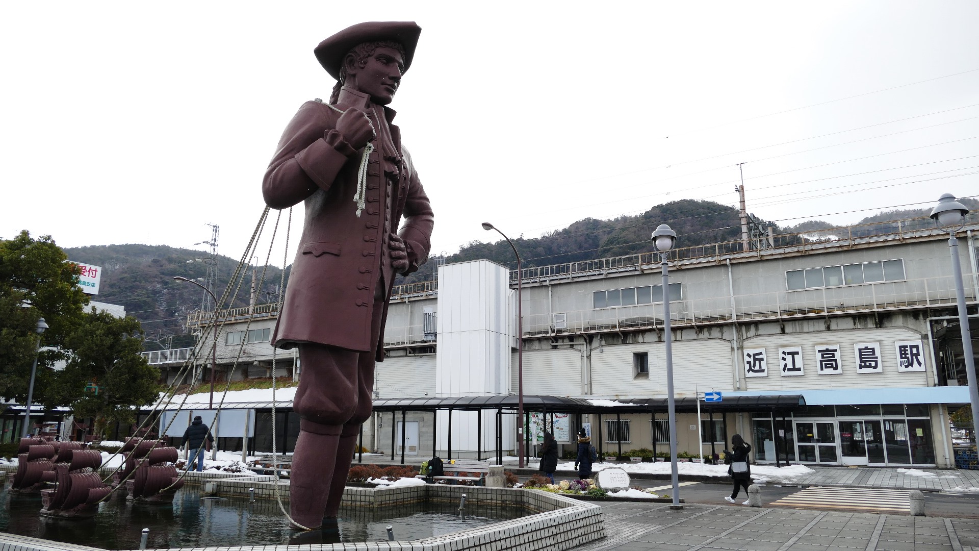 | 湖西線・近江高島駅 2018.2 ガリバー旅行村PRのガリバー像 |