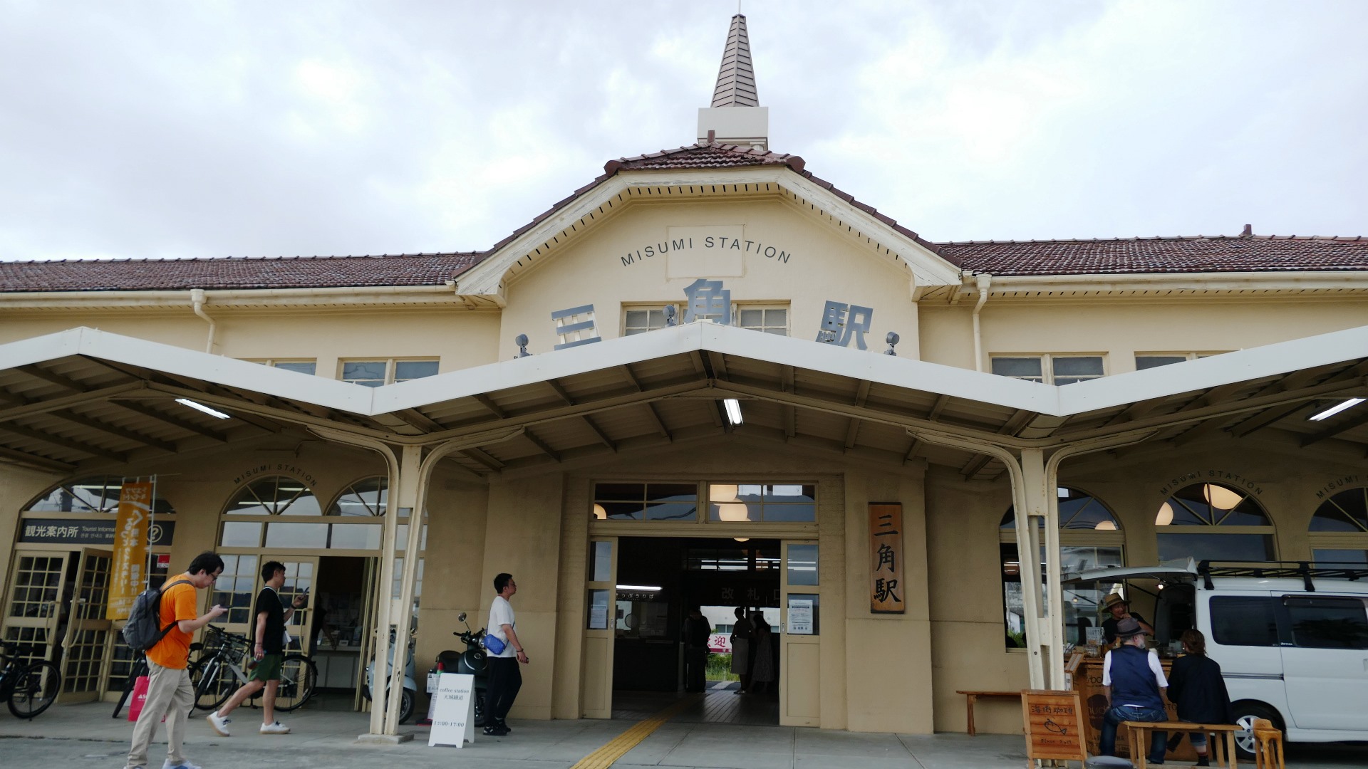 | 三角駅 三角線の終着駅。 駅舎は観光特急「A列車で行こう」運行開始に伴いリニューアルされた 2024.10 |