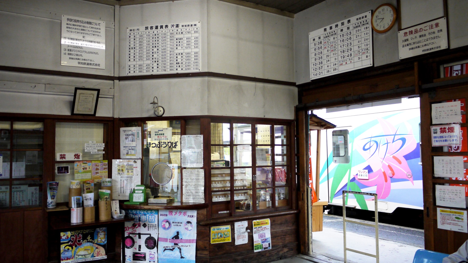 広見線・明智駅 木造駅舎は開業1920(大正9)年当初のもの。2001年に廃止された八百津線の起点駅、今も名残がある。広見線単線区間の交換設備を有する駅。明智-御嵩はmanaca非対応エリア | ||||||