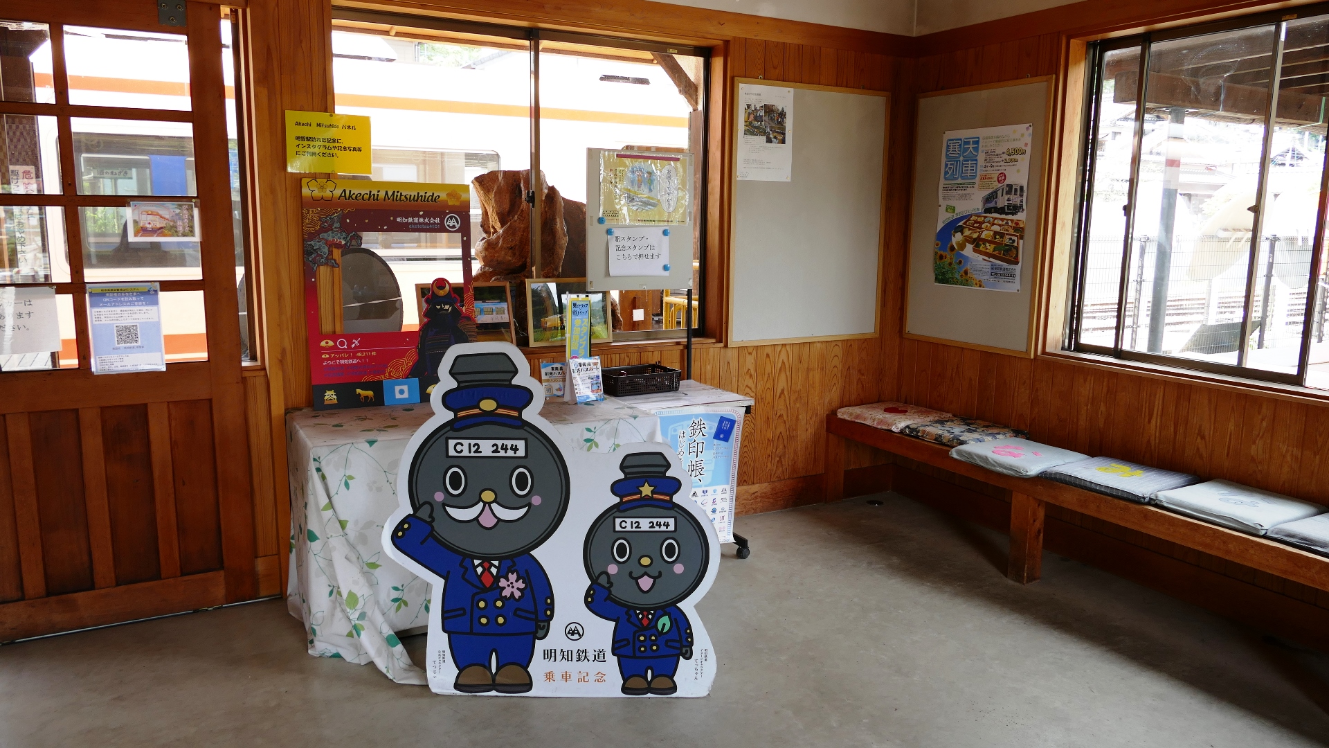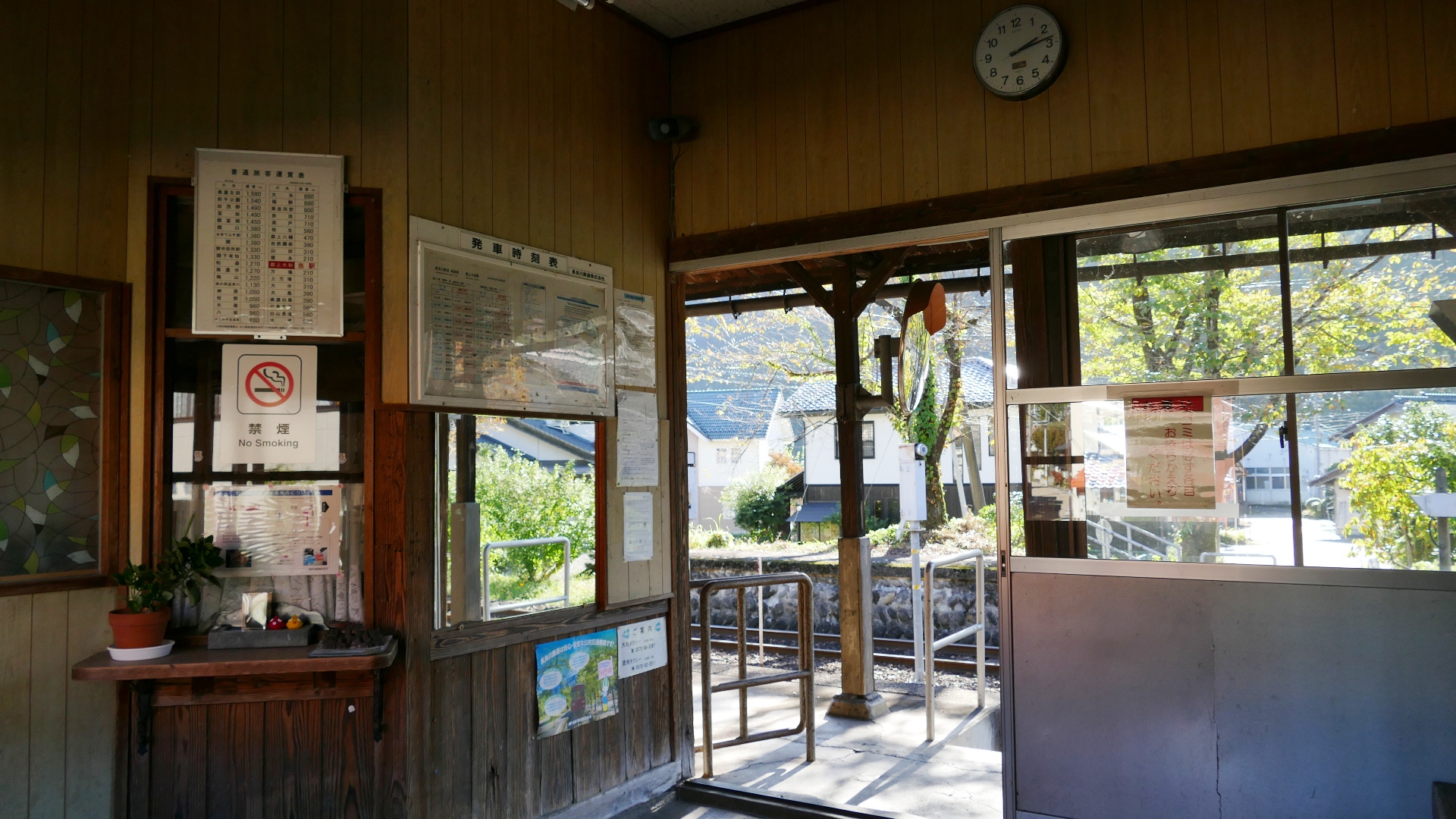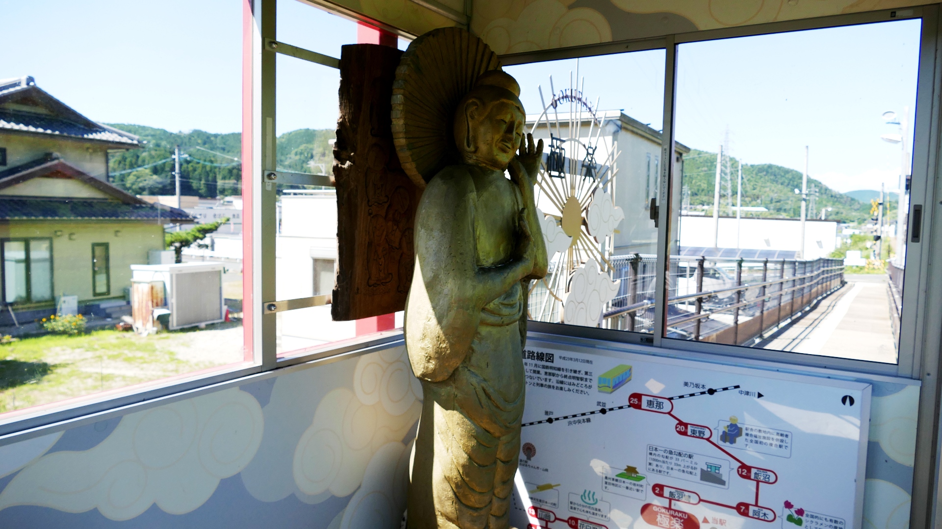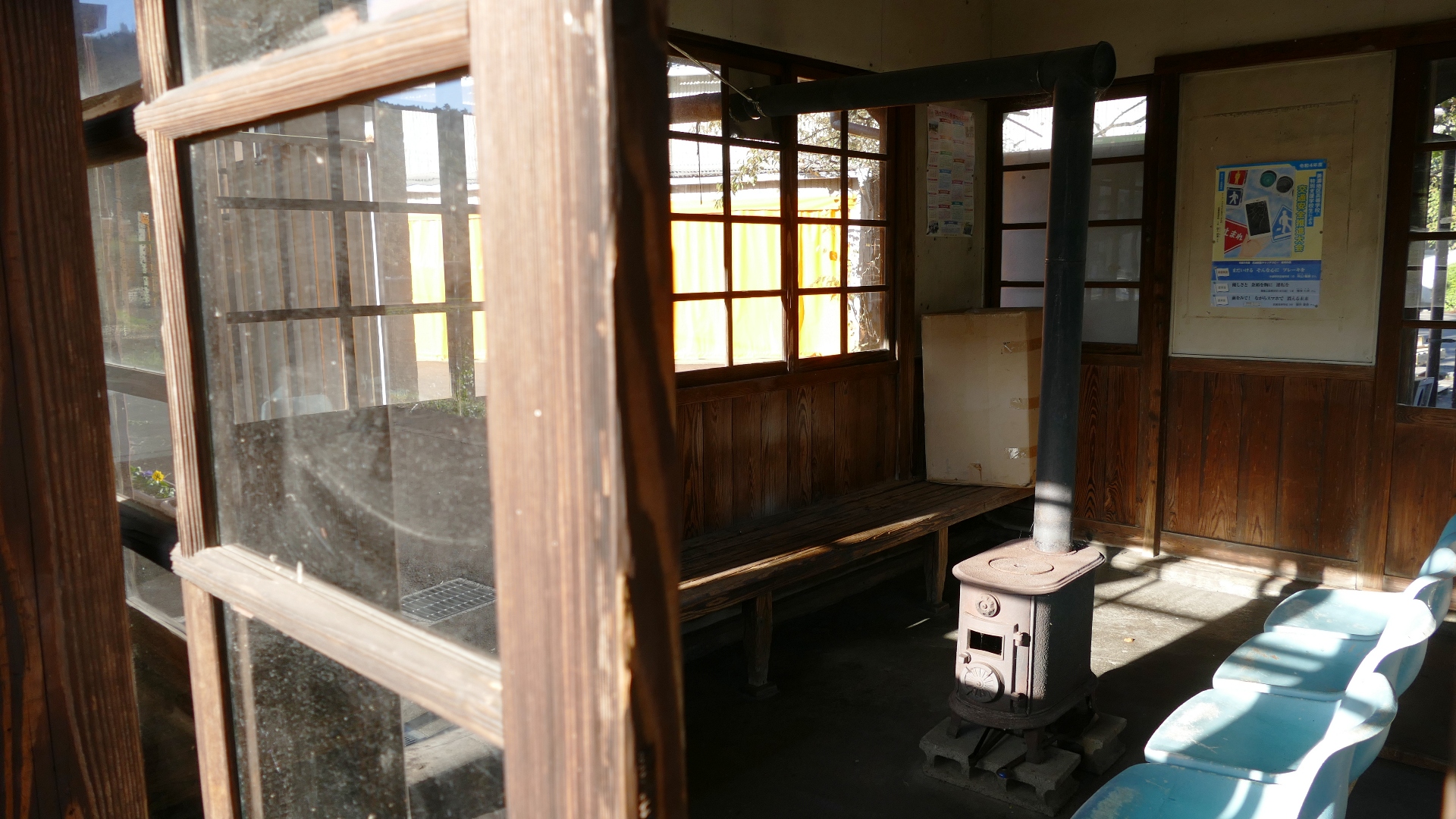 美並苅安駅 待合室には薪ストーブ、また円空仏があり趣がある 2023.10 |