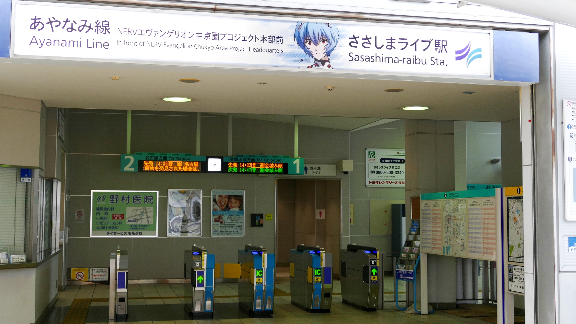 | 金城ふ頭駅 2010.1 | ささしまライブ駅 2020.1 (NERVエヴァンゲリオン中部圏プロジェクト本部前駅) |