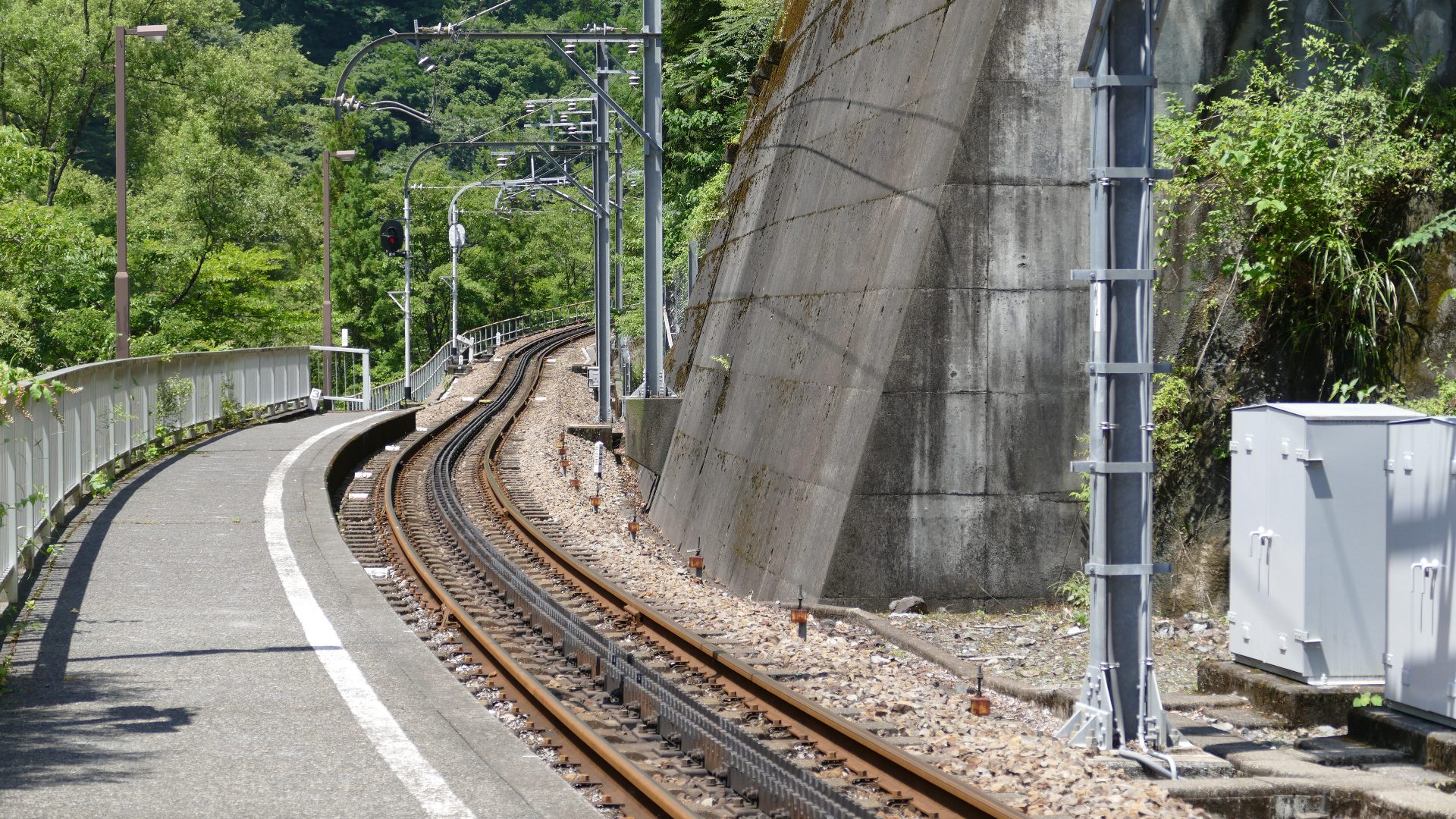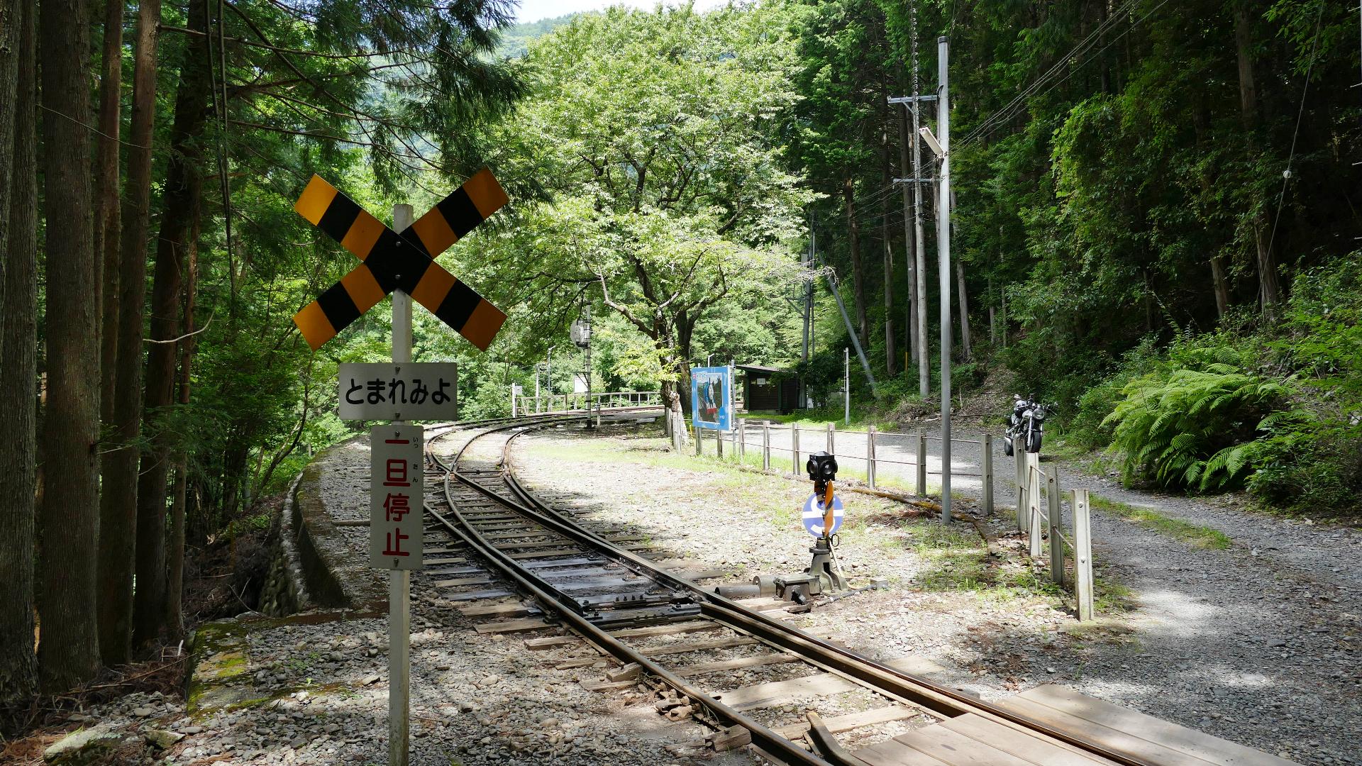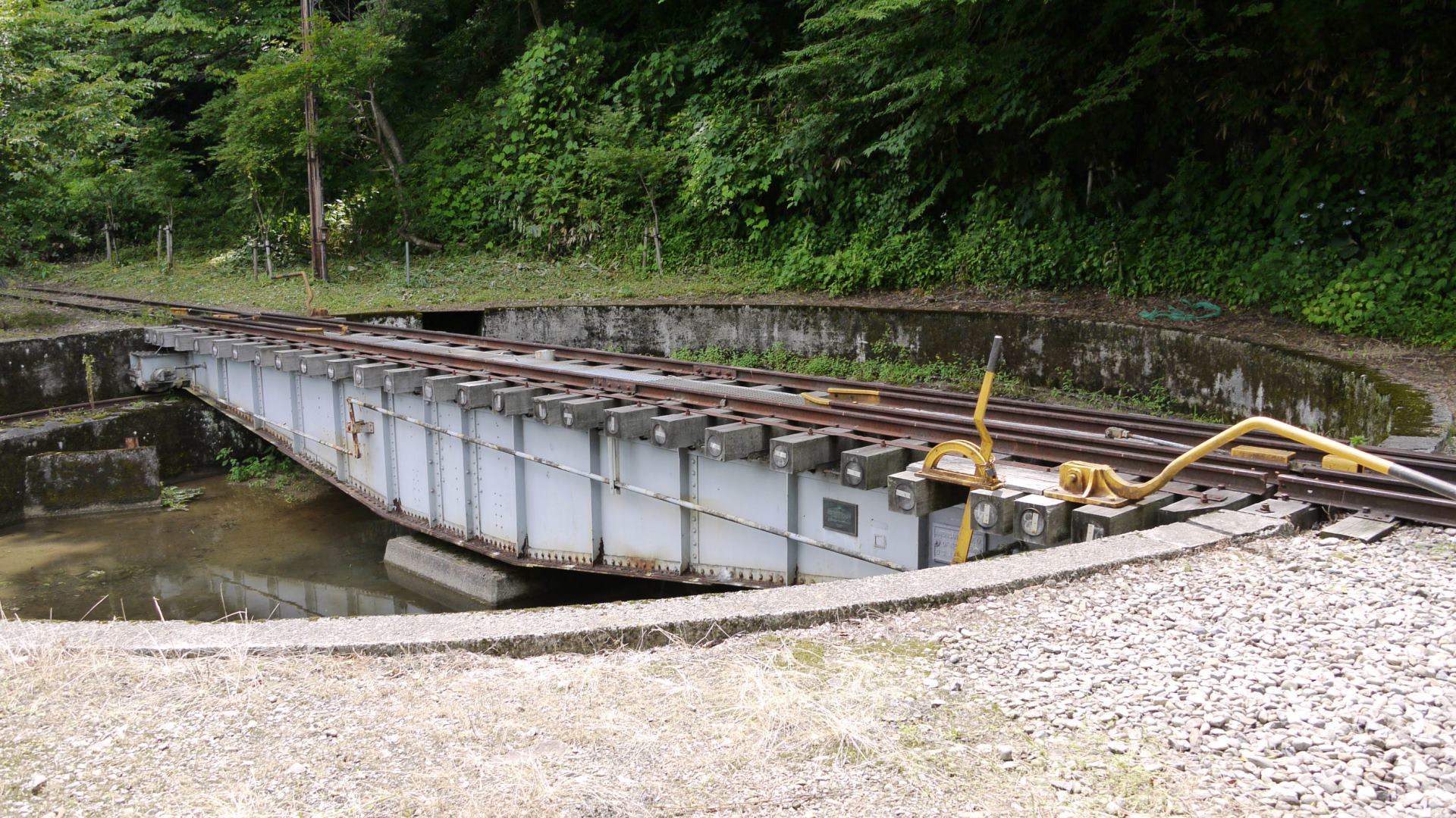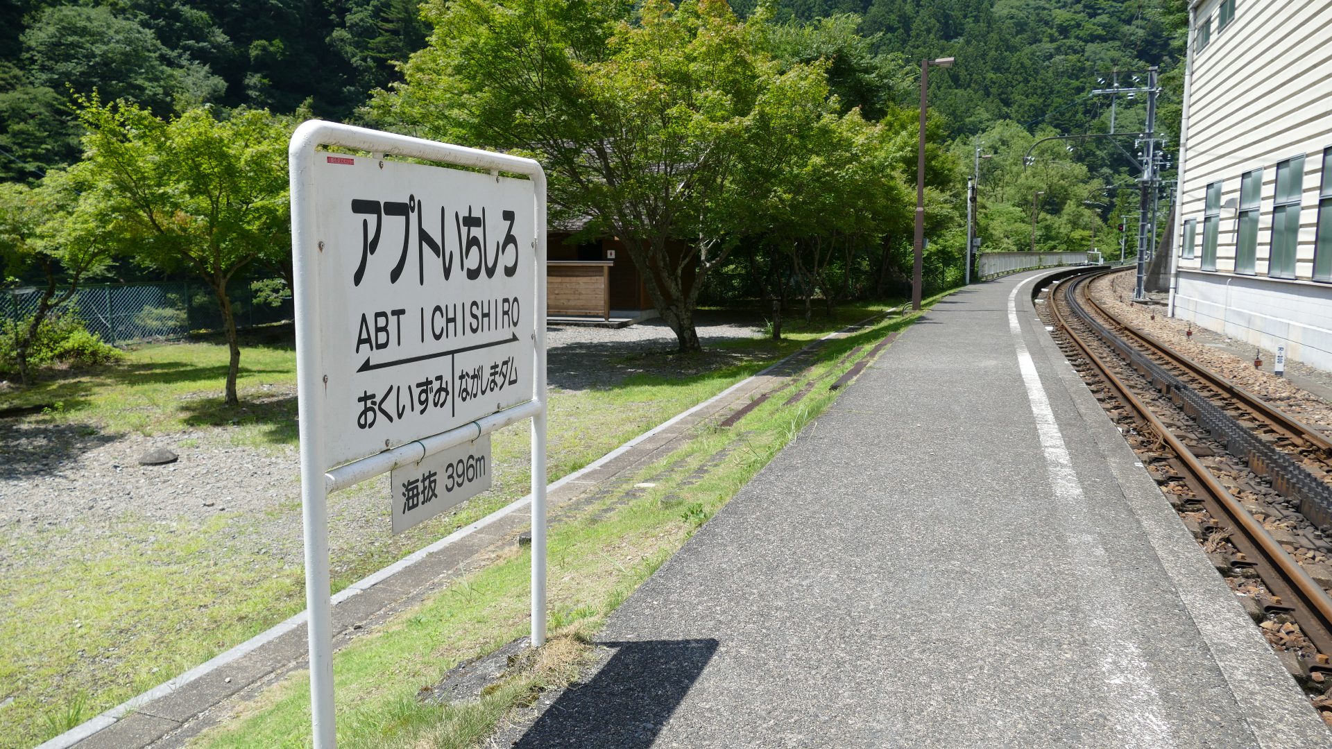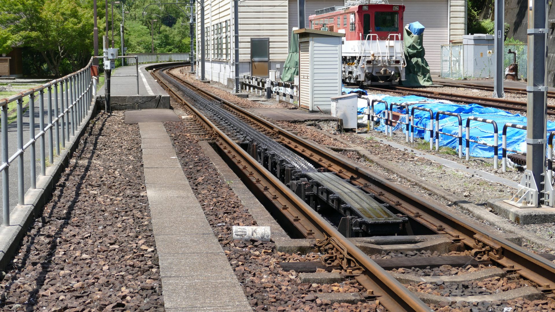 アプトいちしろ駅 ラックレールと奥には90‰ |