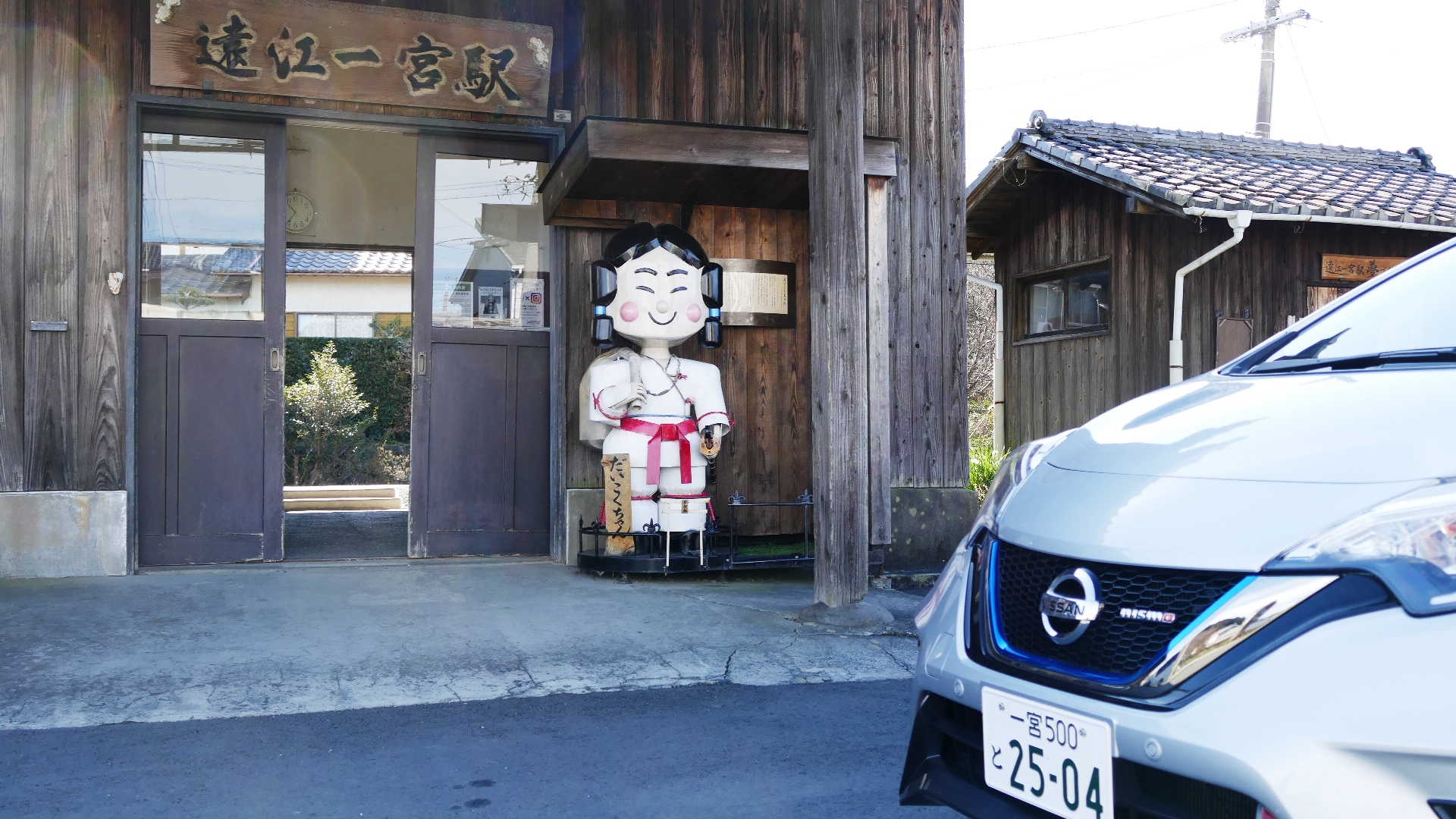 遠江一宮駅 駅舎が登録有形文化財 この駅のシンボル「だいこくちゃん」 2020.2 |