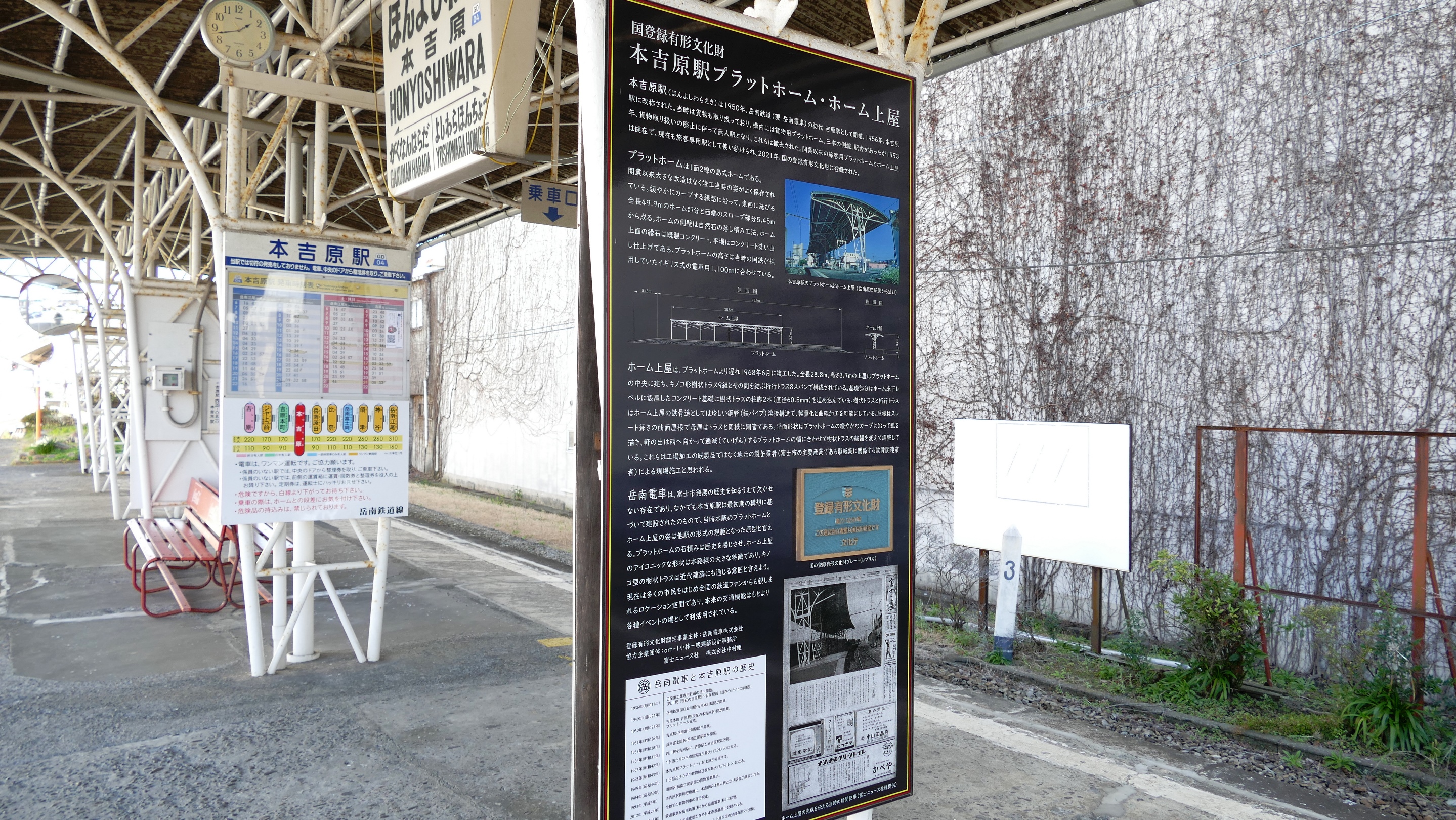 | 本吉原駅 本社がある駅 プラットホームとホーム上屋が国の登録有形文化財 |