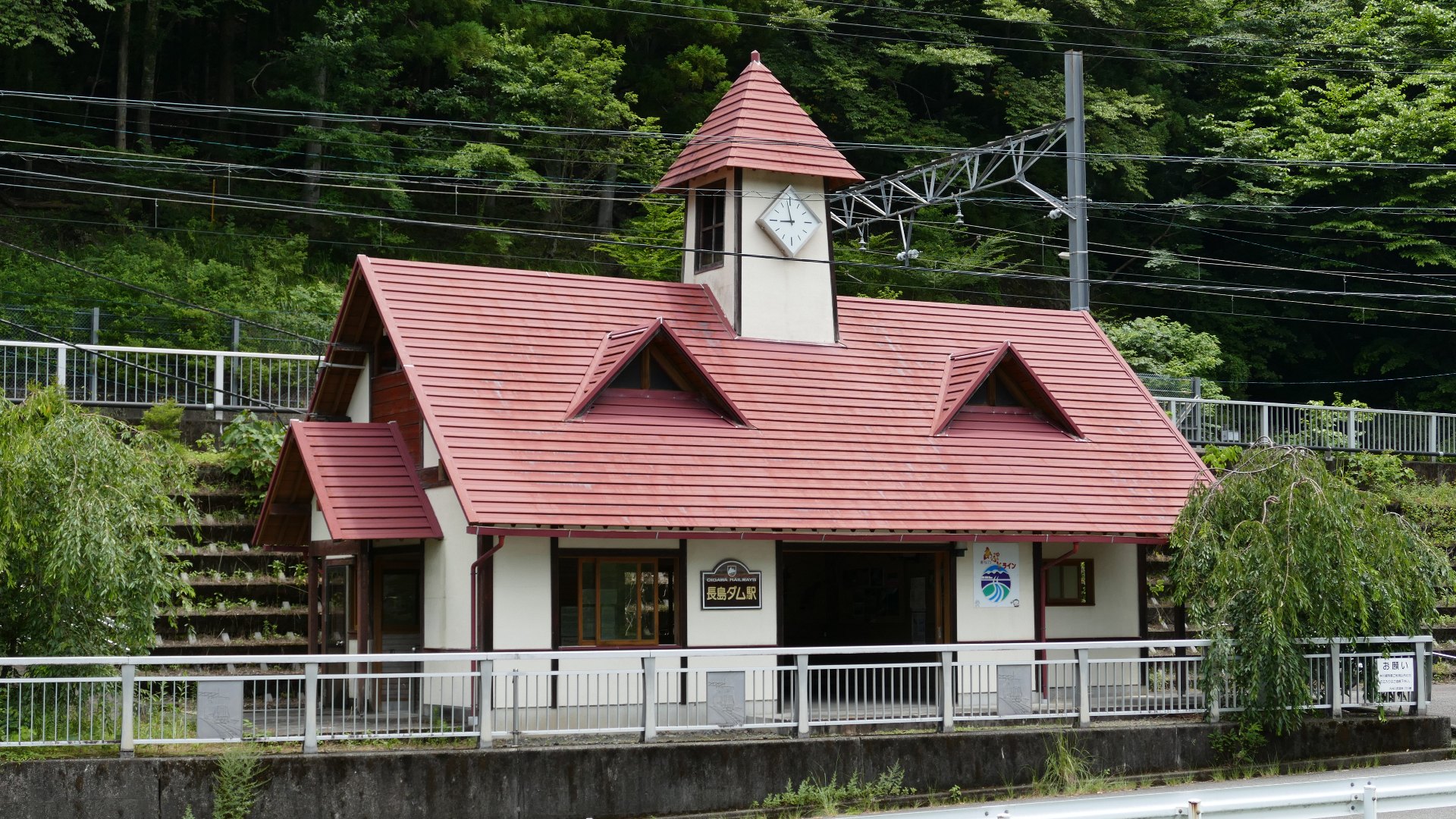 | 長島ダム駅 アプト区間の終点にはモダンな駅舎 2024.7 |