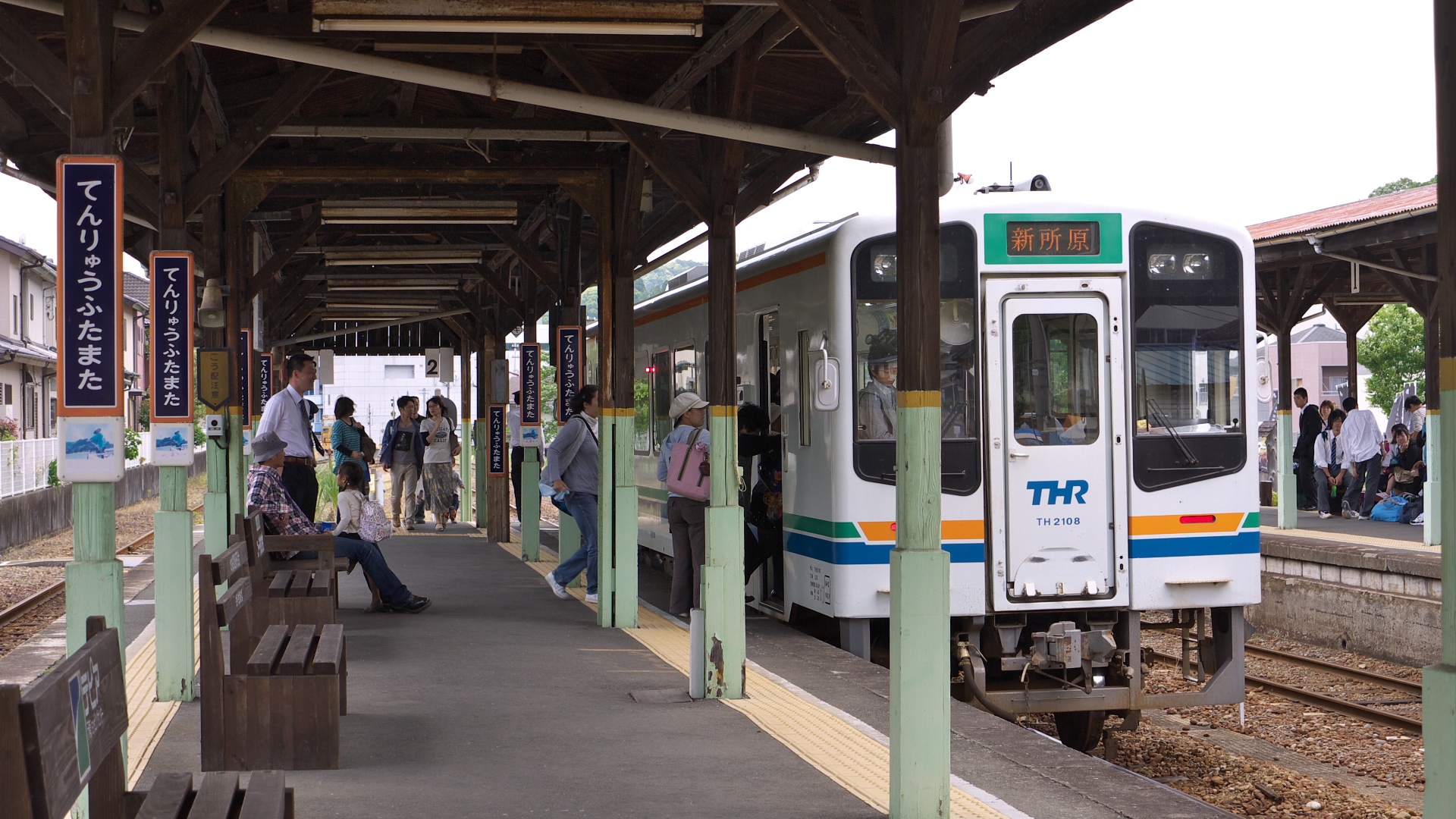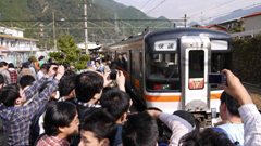 | 飯田線でキハ75系が珍しいのか、人が溢れている。 | 中部天竜駅ホームから | 中部天竜駅。 この賑わいは、あまりお目にかかれない光景 |