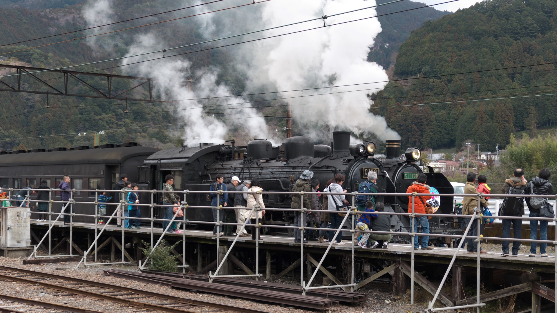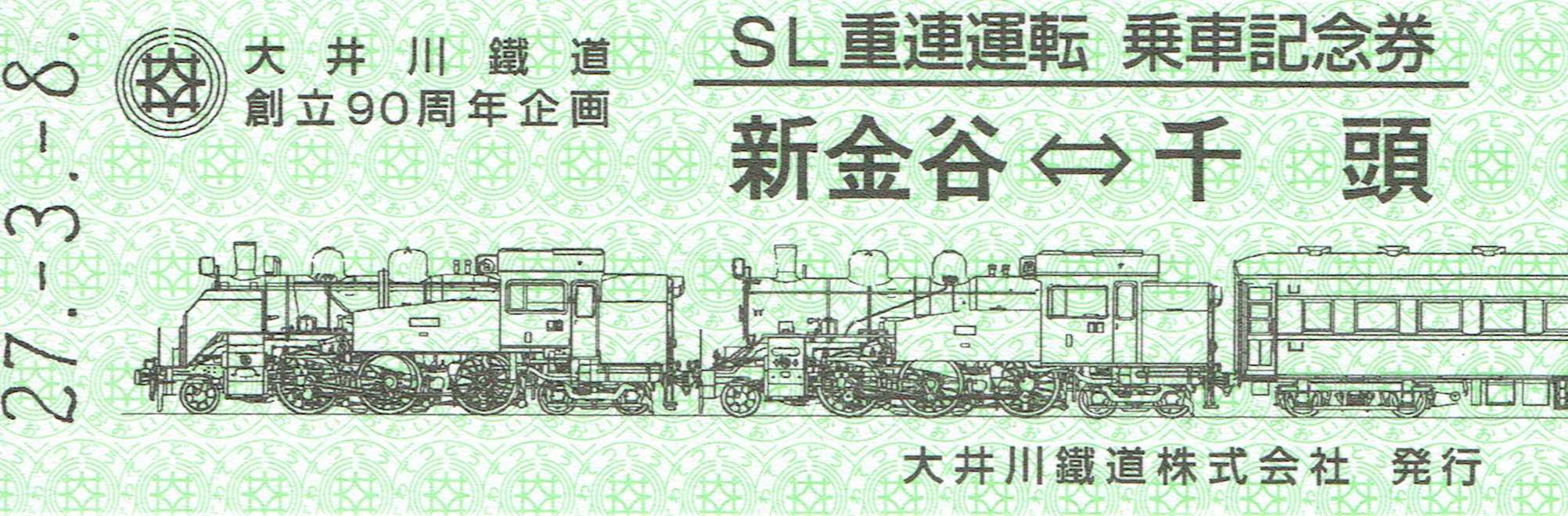 | 大井川鉄道 SL重連運転 2015/03/08 民鉄「大井川鉄道」の頁はこちら 創立90周年企画、C1190+C108による重連運転。普段はELによる後押しあるが今回はSL牽引のみ。 |