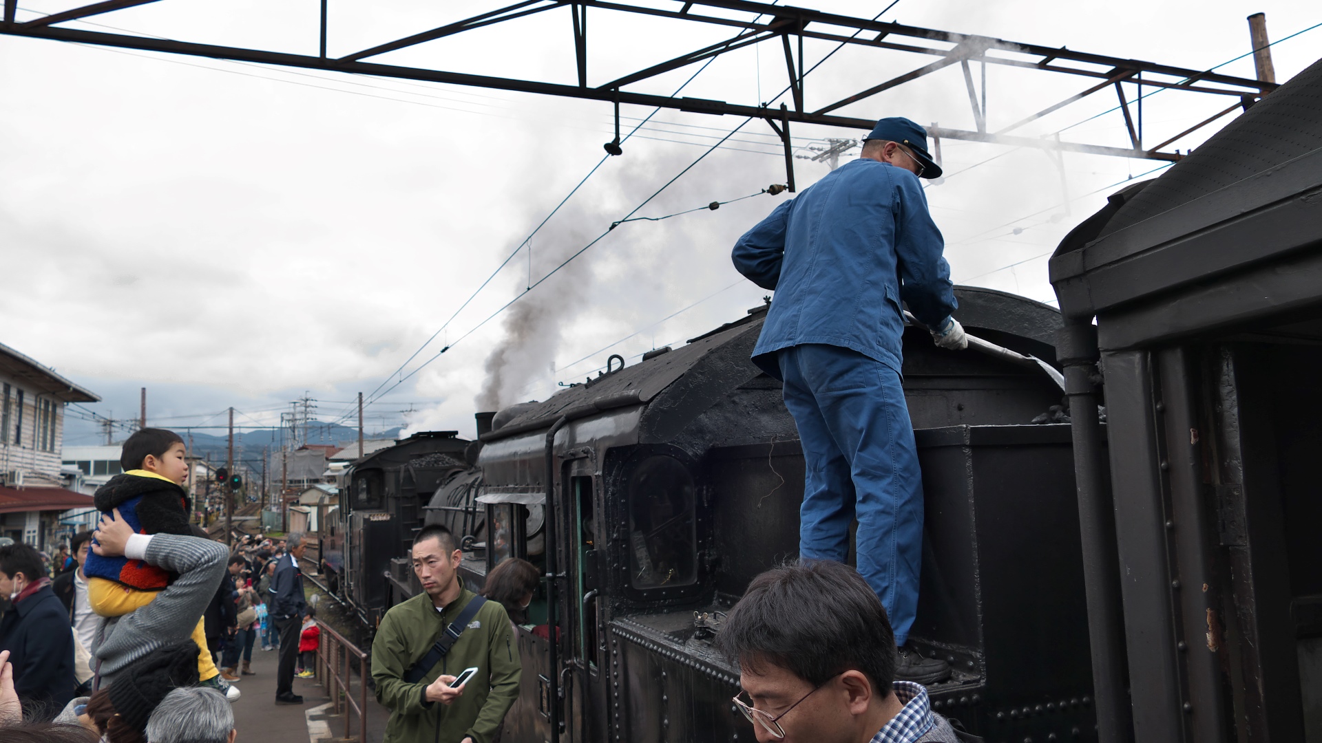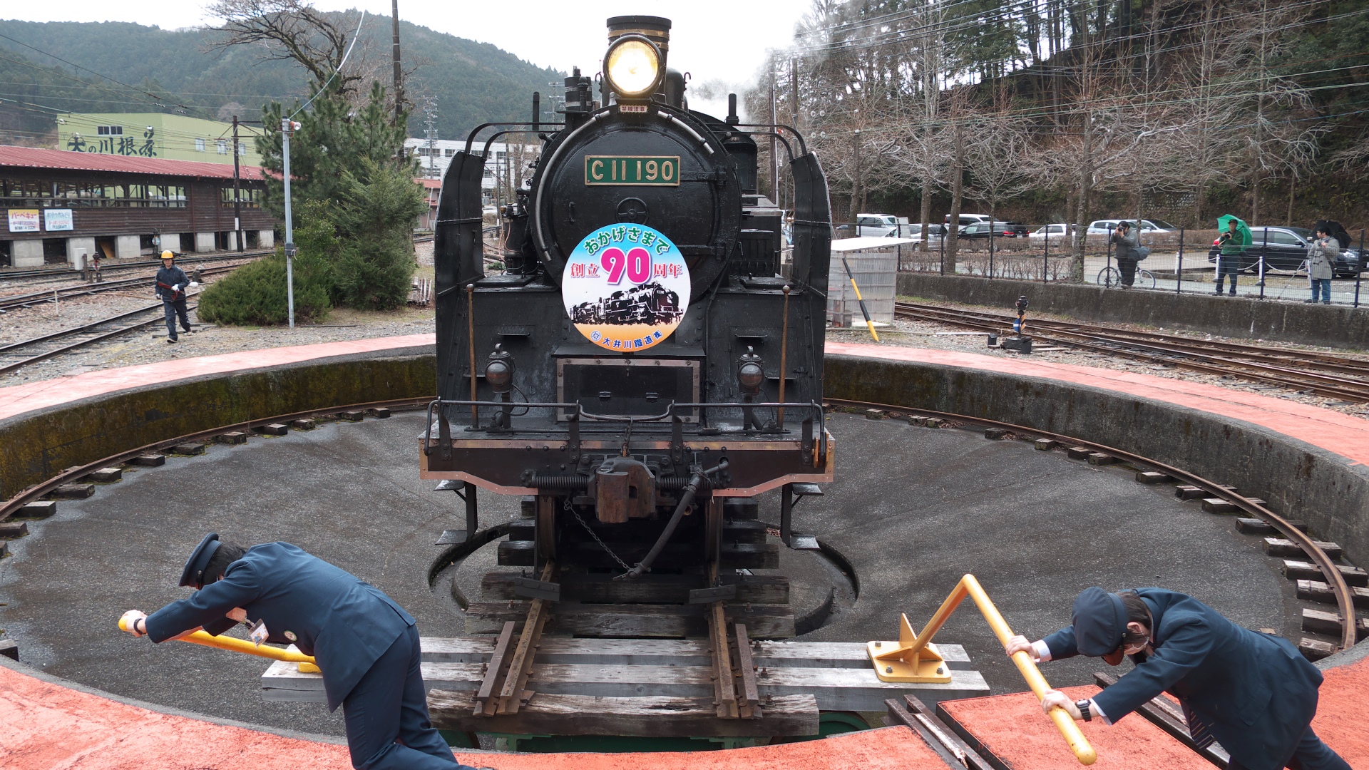 | 千頭駅到着 | 元近鉄16000系 | 千頭到着後の風景。SL人気はスゴイ | 手動転車台もスゴイ | ||||