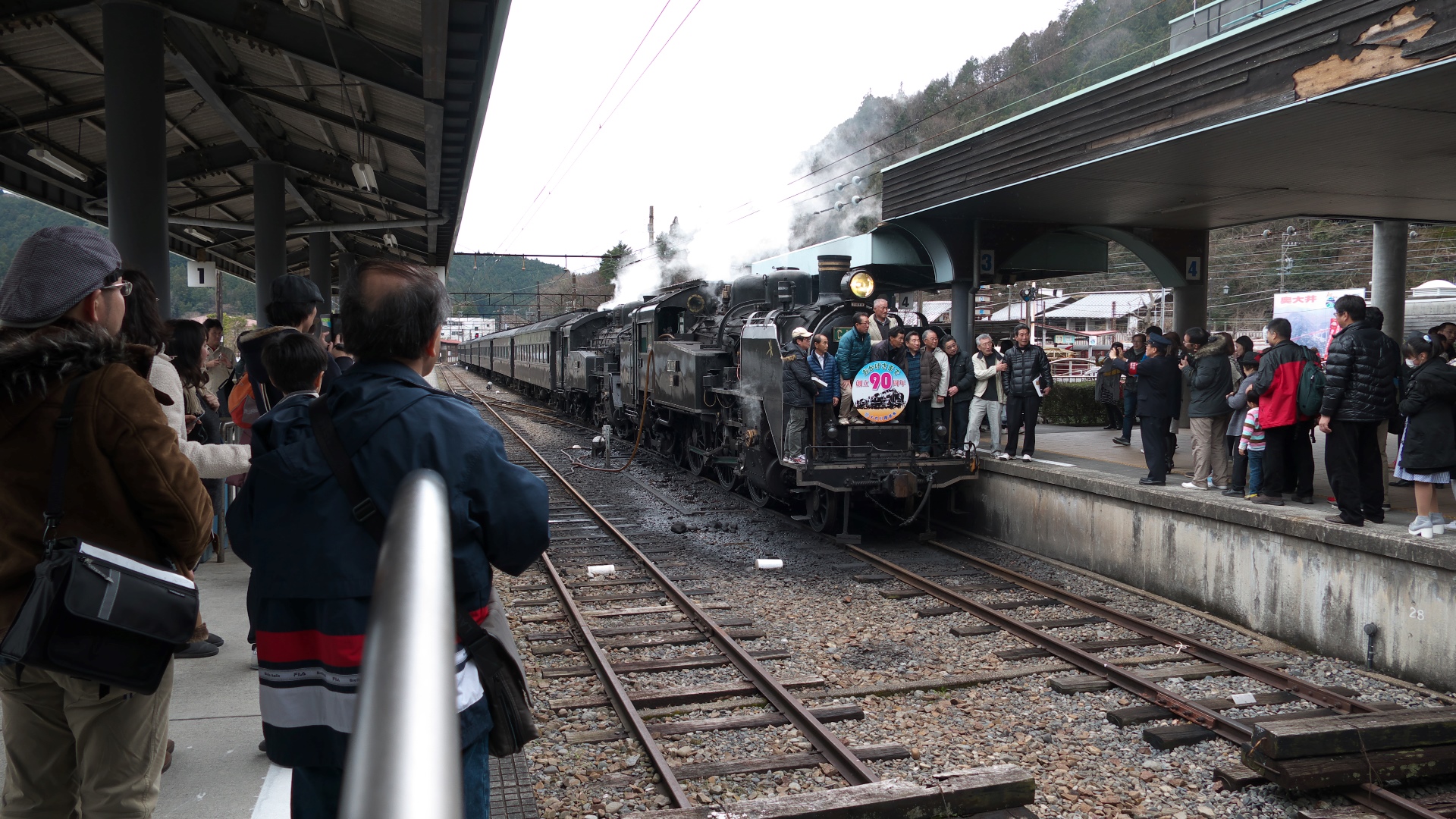 | C58 389は旧国鉄二俣線で活躍していた。 | 「古希の祝い」特別記念列車。 セレモニーのクス玉が割られた瞬間 |