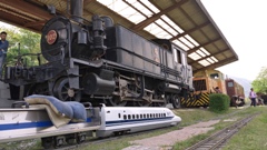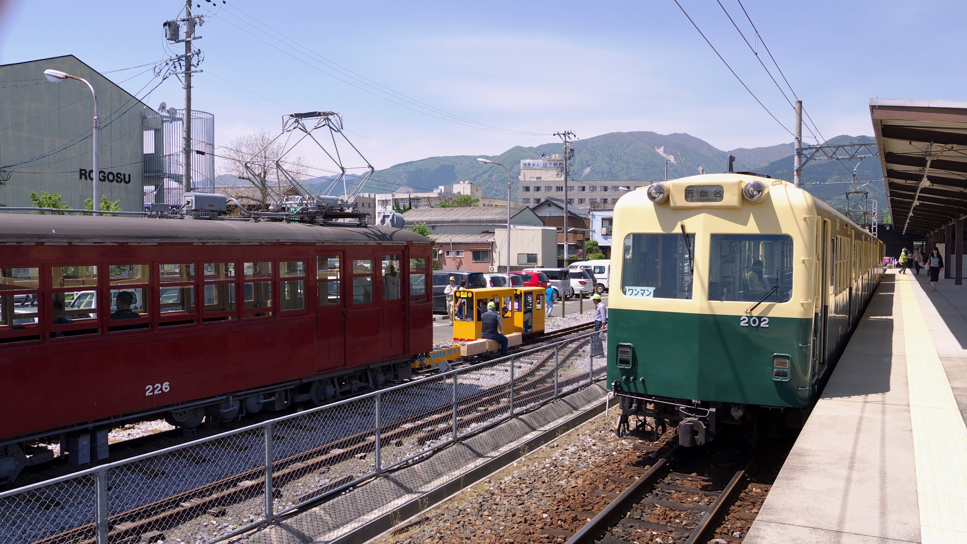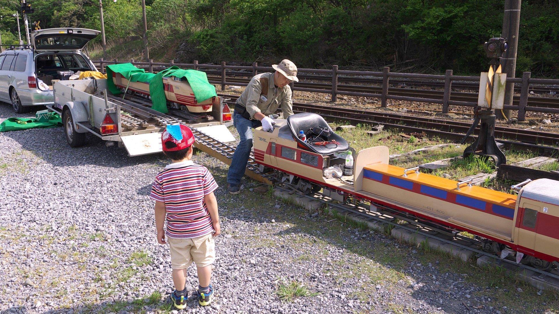 | 丹生川から終点の西藤原まで、101系ラッピング電車に乗る。 | 西藤原駅にはウィステリア鉄道(博物館)がある。 | ウィステリア鉄道ではミニ電車も走る。(撤収作業中) | ウィステリア鉄道ではミニ新幹線700系も走る。(撤収待ち) | ||||