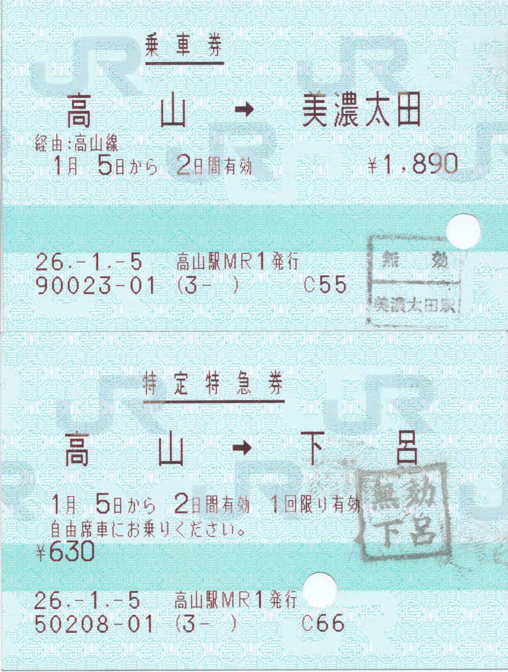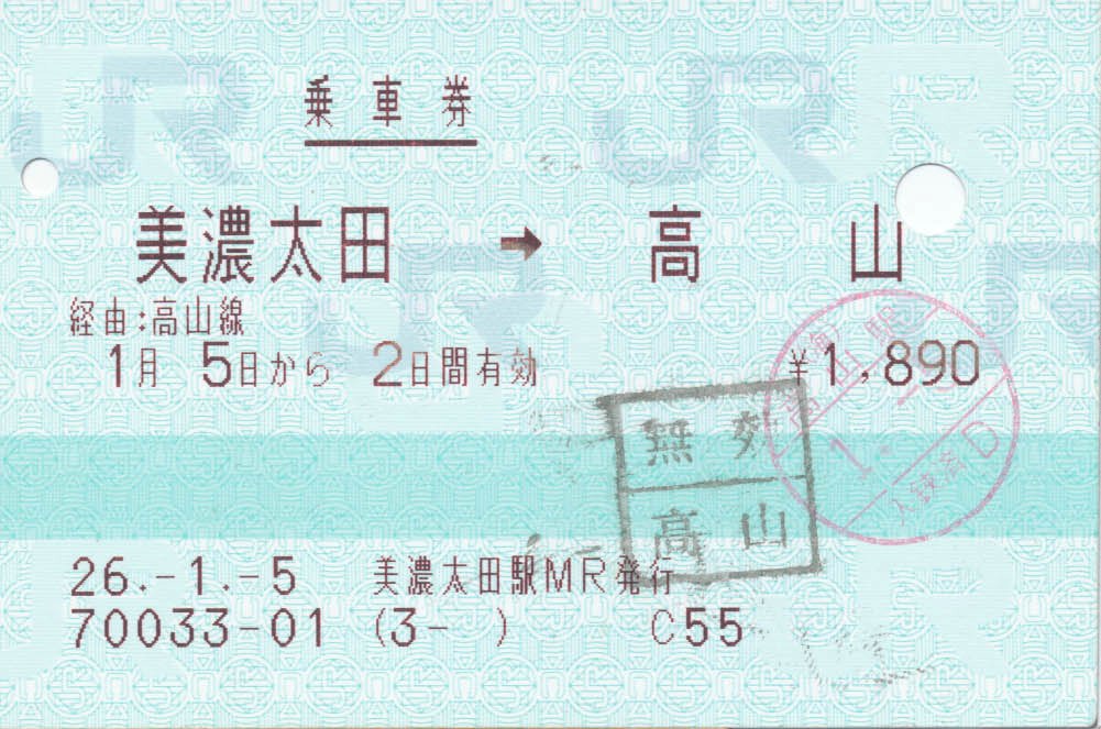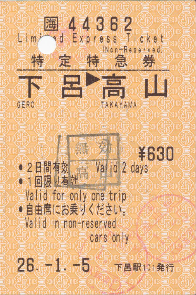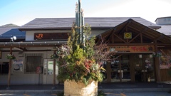 | どこの駅だったか、交換待ち? | 下呂駅はお正月モード | 下呂駅改札口 | 下呂にて特急券を買う。 | ||||